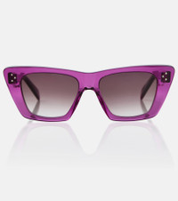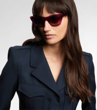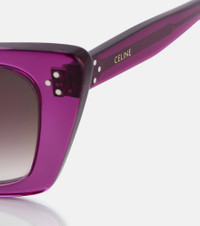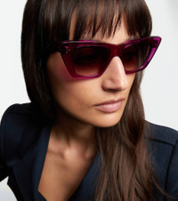 CELINE Eyewear looks to the future with designs like these purple sunglasses. Made in Italy from transparent acetate, they have an angular cat-eye silhouette with wide temples and gradient grey lenses. Product Details - Frame color: purple - Frame material: acetate - Lens color: grey - comes with cleaning cloth - comes with a case and presentation box - Lens filter category 3 - Made in Italy - Item number: P00574582 Size & Fit - Lens width: 51mm-2" - Bridge size: 16mm-0.65" - Earpiece length: 145mm-5.7" - International fit