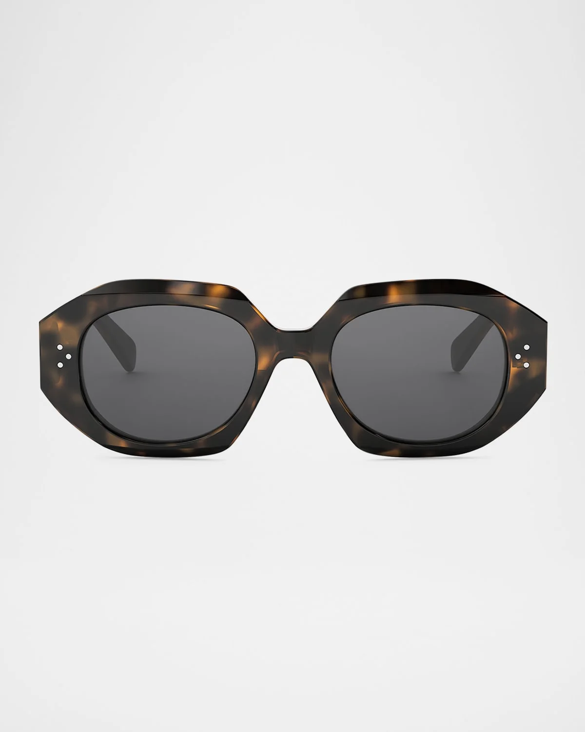 - Celine "3 Dots" square geometric-shaped sunglasses - Featuring the iconic 3 dots - Eye/bridge/temple (in mm): 52-20-140 - Solid lenses - Saddle nose bridge - Thin, tapered arms - Classic logo on the temples - Acetate - 100% UVA/UVB protection - Made in Italy - Proposition 65 warning for California residents