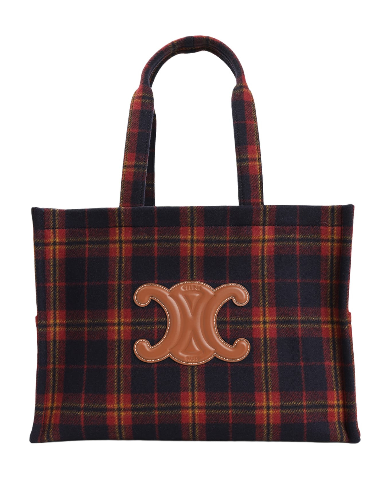 Celine Multicolor Wool Large Cabas Handbag. Pure wool handbag, top handles, front brown signature CC logo, side pockets, one main compartment. Red, blue and yellow checked pattern all-over. Made in: Italy Color: Ml Multicolor Size and fit: - W:40cm H:29cm D:16cm Model number: 196762GFM14ML