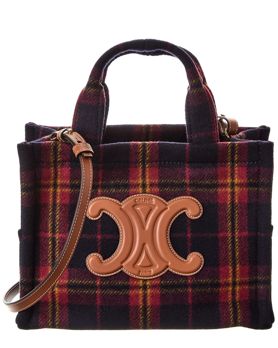 CELINE Cabas Thais Small Tartan & Leather Tote