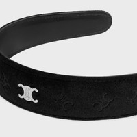 Celine Stamped Headband in Calfskin, Polyester and Brass with Rhodium Finish