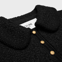 DETAILS 62% CASHMERE 32% WOOL 4% SILK 2% POLYAMIDE TAILORED WITH SHOULDER PADS CLAUDINE COLLAR 2 PATCH POCKETS BRAIDED PIPING DETAILS 12 CELINE-ENGRAVED BUTTONS 4 CELINE-ENGRAVED BUTTONS ON THE CUFFS MADE IN ITALY REFERENCE : RV0VV593V.38NO