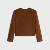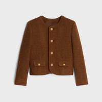 CHELSEA JACKET WITH BRAIDED PIPING IN LIGHTWEIGHT MOHAIR WOOL TWEED DETAILS 84% WOOL 10% MOHAIR 6% POLYAMIDE LINING 51% MODACRYLIC 49% VISCOSE CLASSIC FIT TAILORED WITH SHOULDER PADS CREW NECK 2 FLAP POCKETS BRAIDED PIPING DETAILS 4 CELINE PARIS-ENGRAVED BUTTONS 1 CELINE PARIS-ENGRAVED BUTTON ON THE POCKET 1 CELINE PARIS-ENGRAVED BUTTONS ON THE CUFFS MADE IN FRANCE REFERENCE : 2V17W227V.18NO