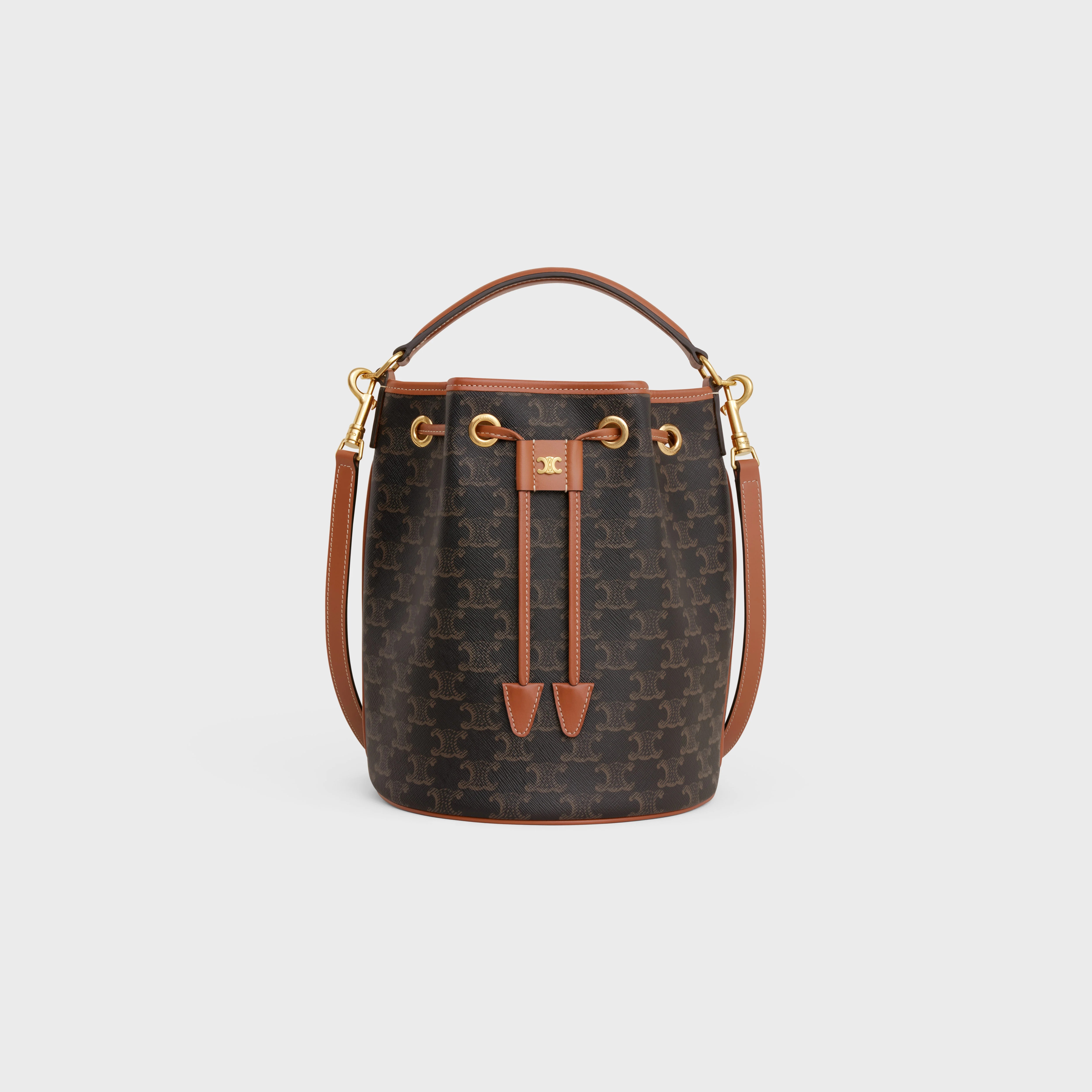 DETAILS 8 X 9 X 8 IN (20 X 24 X 20 CM) TRIOMPHE CANVAS, TRIMMINGS IN CALFSKIN TEXTILE LINING GOLD FINISHING HAND CARRY, SHOULDER CARRY AND CROSS-BODY CARRY DRAWSTRING LEATHER TIES ONE LEATHER HANDLE WITH 4 IN (9 CM) DROP ONE REMOVABLE AND ADJUSTABLE STRAP WITH A MINIMUM DROP 17 IN (47 CM) AND MAXIMUM DROP 20 IN (53 CM) REFERENCE : 116882FQM.04LU