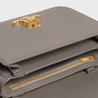 MEDIUM TRIOMPHE BAG IN SHINY CALFSKIN WITH AN ADJUSTABLE LEATHER SHOULDER STRAP. THE BAG CLOSES WITH A TRIOMPHE CLASP. DETAILS 9 X 6 X 2 IN (22 X 15.5 X 6 CM) CALFSKIN LAMBSKIN LINING GOLD FINISHING CROSS-BODY AND SHOULDER CARRY TRIOMPHE METALLIC CLOSURE THREE INNER COMPARTMENTS ONE INNER ZIPPED POCKET ONE INNER FLAT POCKET ADJUSTABLE STRAP WITH A MINIMUM DROP 18 IN (44 CM) AND MAXIMUM DROP 20 IN (51 CM) REFERENCE : 187363BF4.10BL