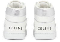 DESCRIPTION - Rounded toe shape - thin perforations on the upper - side trimmings with graphic lines - celine signature at the back and on the tongue of the sneaker - "ct-01" nomenclature is embossed on the side of the sneaker - celine signature embossed on the external side of the outsole - celine signature debossed under the outsole - cotton laces - textile insole and lining - rubber outsole DETAILS AND CARE MATERIAL: 100% calfskin HEEL HEIGHT: 2 cm / 0.8 " COLOR: optic_white_silver COUNTRY OF MANUFACTURE: Italy PRODUCT CODE: CEL6S6M3WHTI21A100