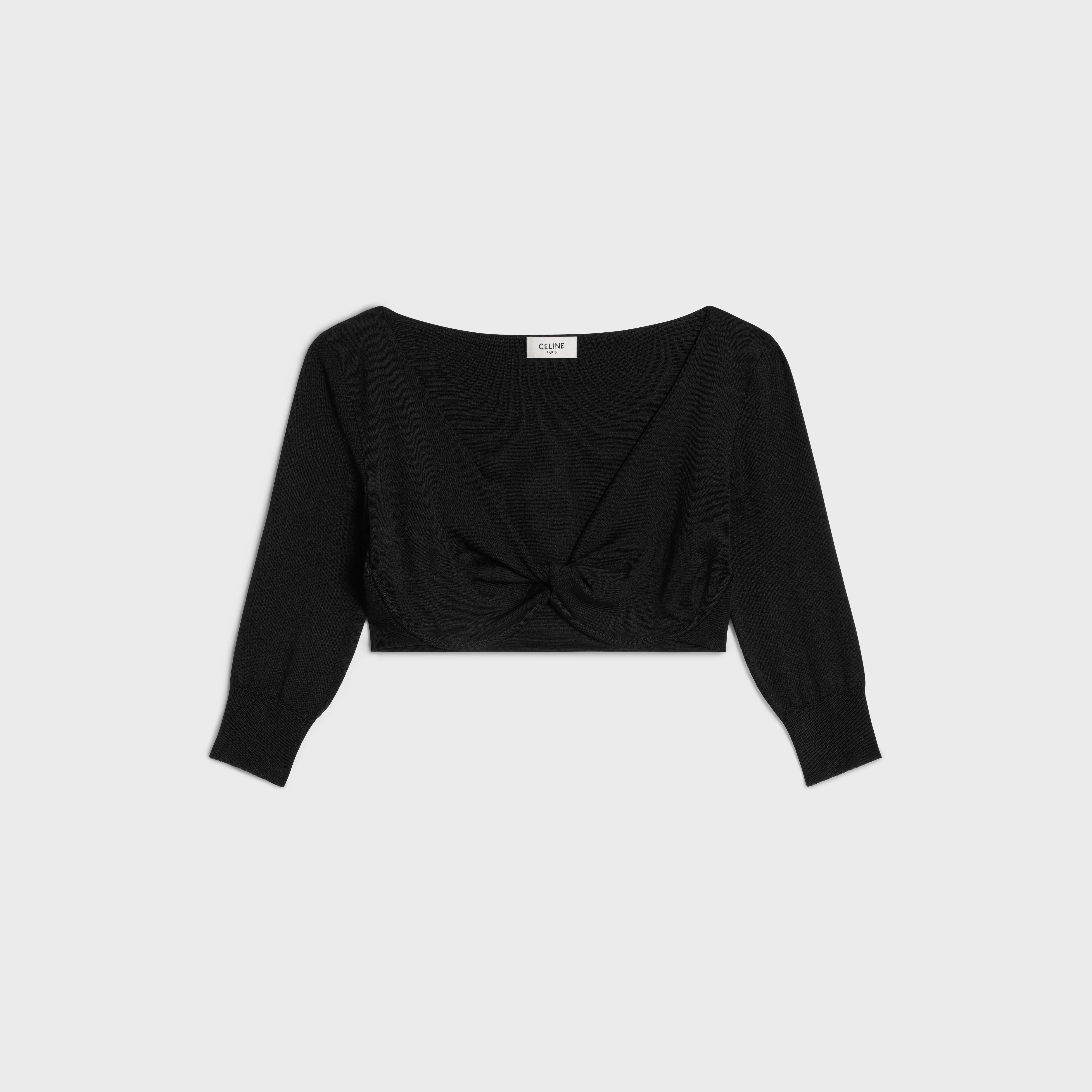 DRAPED CROP TOP IN SILK DETAILS 84% SILK 12% POLYAMIDE 4% ELASTANE SLIM FIT CROPPED LENGTH PLUNGING V-NECK TAILORED WITH UNDERWIRE 3/4 SLEEVES RIBBED TRIM MADE IN ITALY REFERENCE : 2AI94965U.38NO