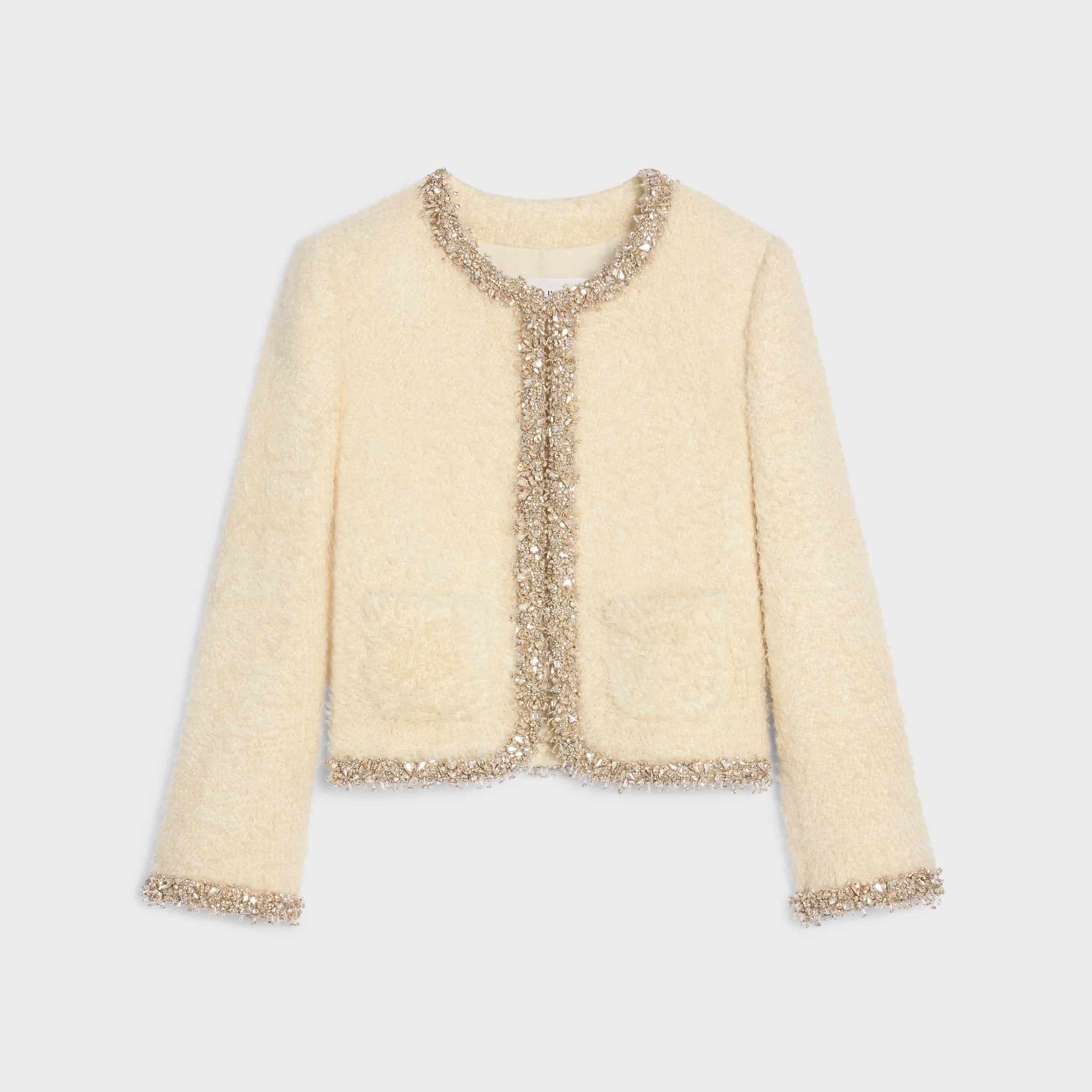 DETAILS 100% SILK JEWEL EMBROIDERY CLASSIC FIT TAILORED WITH SHOULDER PADS PURE COLLAR 2 ROUND PATCH POCKETS HOOK AT THE COLLAR MADE IN ITALY REFERENCE : RV0OH0515.03HD