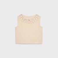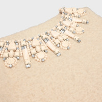 DETAILS 58% WOOL 35% MOHAIR 7% POLYAMIDE LINING 51% MODAL 49% VISCOSE JEWELED EMBROIDERY ON THE NECKLINE CLASSIC FIT CREW NECK BACK ZIP AND HOOK-AND-EYE CLOSURE MADE IN ITALY REFERENCE : RX033333J.01VA