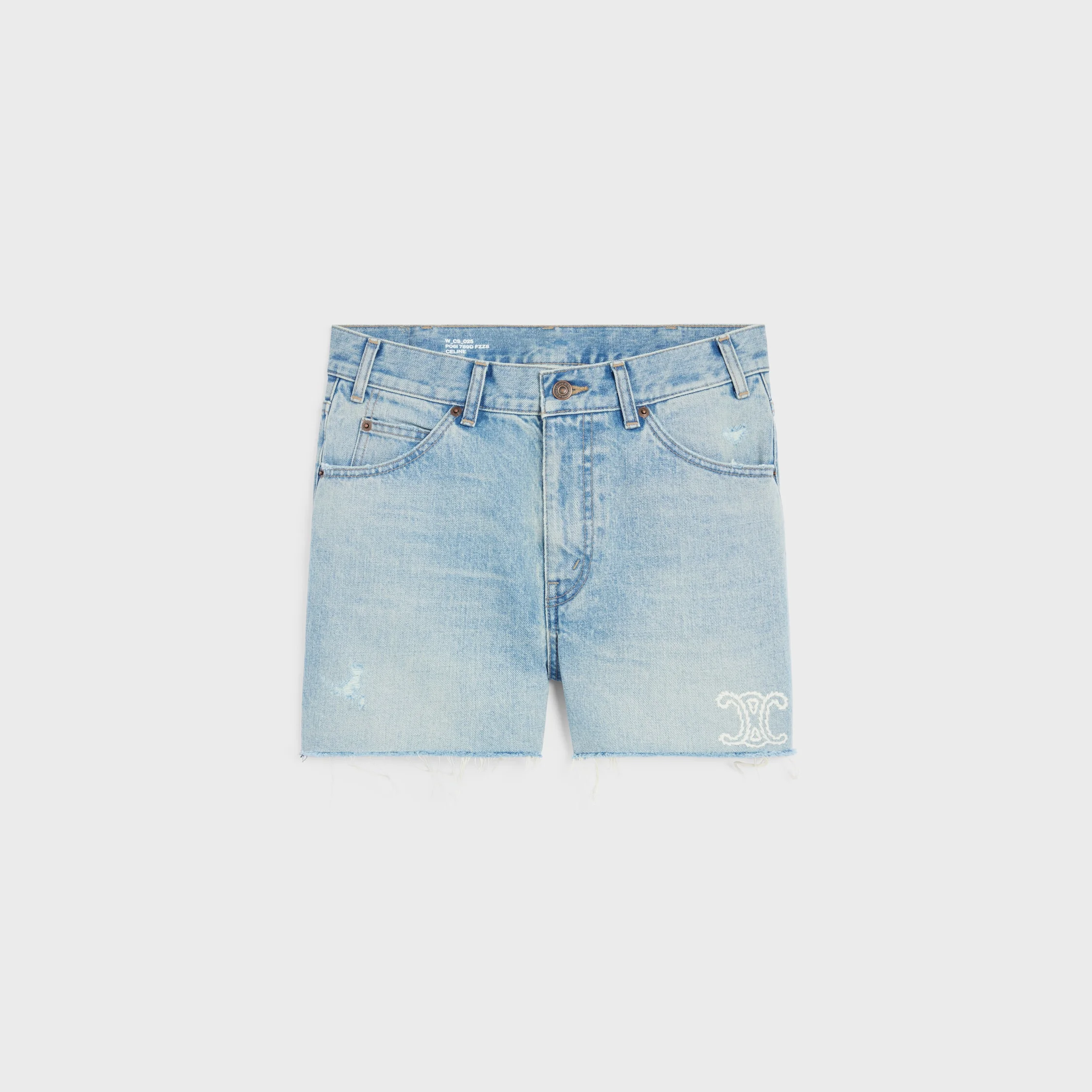 DETAILS 100% COTTON SWEET HONEY WASH TRIOMPHE HAND EMBROIDERY LOOSE FIT MID-RISE 5 POCKETS RIVETS ON THE FRONT POCKETS PATCH AT THE BACK ON THE WAISTBAND RAW HEMS CELINE JEANS-ENGRAVED ZIP AND BUTTON MADE IN JAPAN REFERENCE: RP06I789D.FZZ8