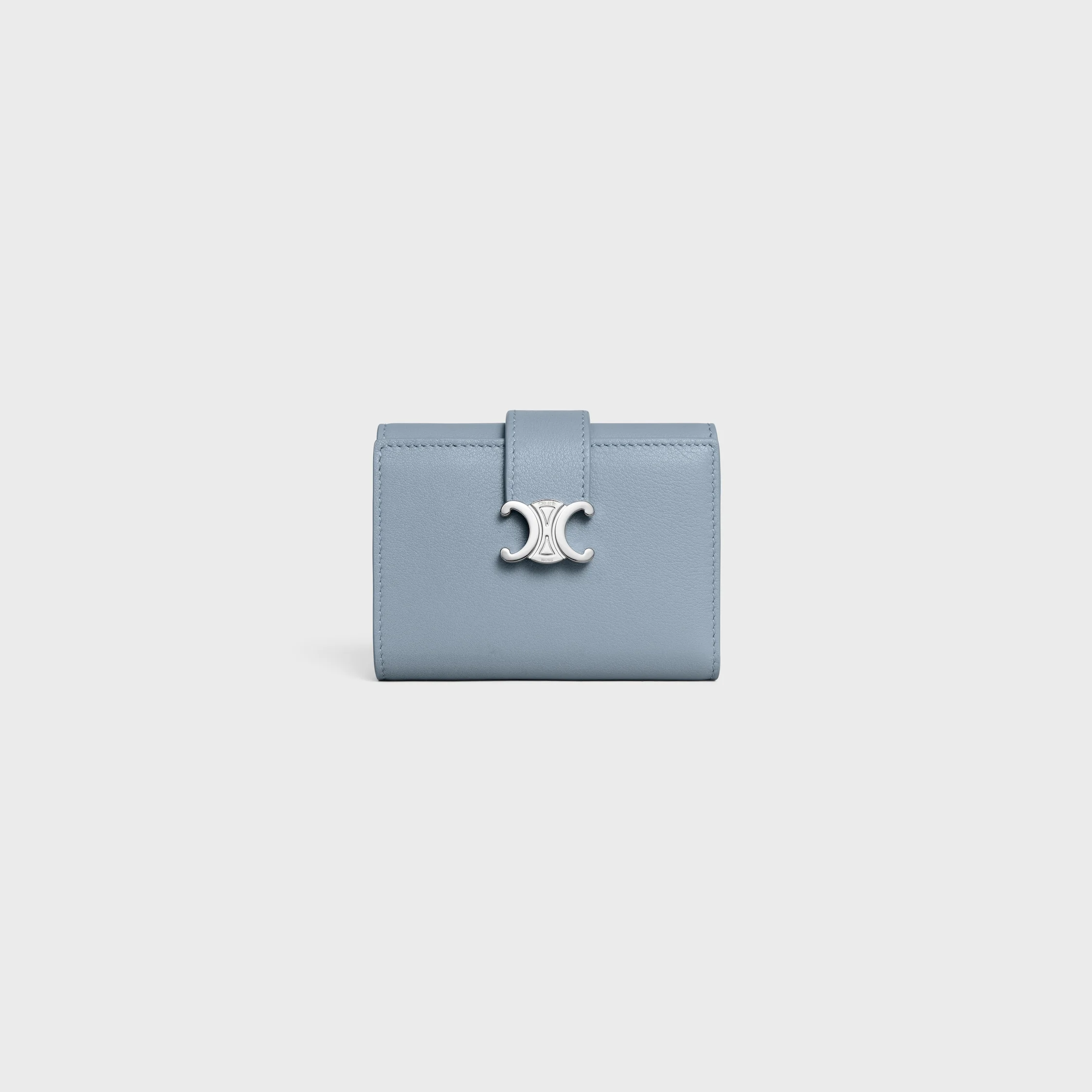 DETAILS 4.1 X 3.1 X 0.8 IN (10.5 X 8 X 2 CM) CALFSKIN CALFSKIN LINING SILVER FINISHING TRIOMPHE METALLIC SNAP BUTTON CLOSURE FOUR CARD SLOTS ONE ZIPPED COIN POCKET ONE NOTE POCKET THREE FLAT POCKETS REFERENCE : 10M963GHH.05LN