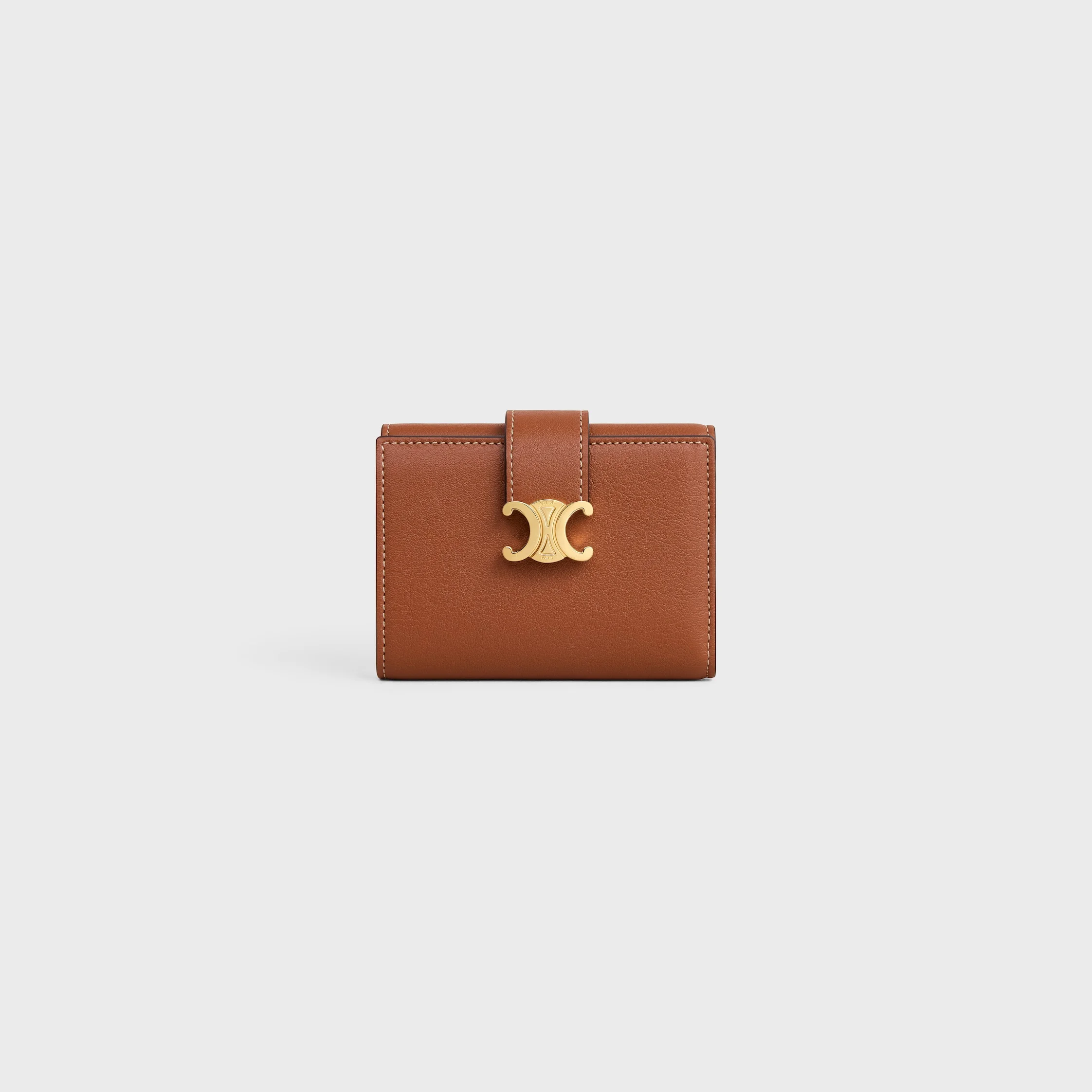 DETAILS 4 X 3 X 1 IN (10.5 X 8 X 2 CM) CALFSKIN CALFSKIN LINING GOLD FINISHING TRIOMPHE METALLIC SNAP BUTTON CLOSURE ONE ZIPPED COIN POCKET FOUR CREDIT CARD SLOTS THREE FLAT POCKETS ONE NOTE POCKET REFERENCE : 10M963GHH.04LU