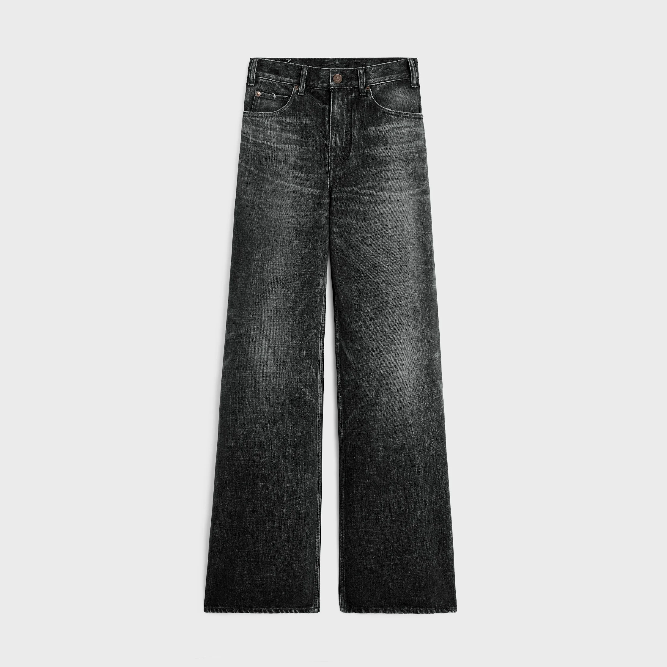 FLARED MID-RISE SURF JEANS IN BLACK ICE RINSE WASH DENIMFITS TRUE TO SIZE. DETAILS 100% COTTON BLACK ICE RINSE WASH CLASSIC FIT MID-RISE FLARED LEG 5 POCKETS RIVETS ON THE FRONT POCKETS PATCH AT THE BACK ON THE WAISTBAND CELINE JEANS-ENGRAVED ZIP AND BUTTON MADE IN JAPAN REFERENCE: 2N691444W.08DK