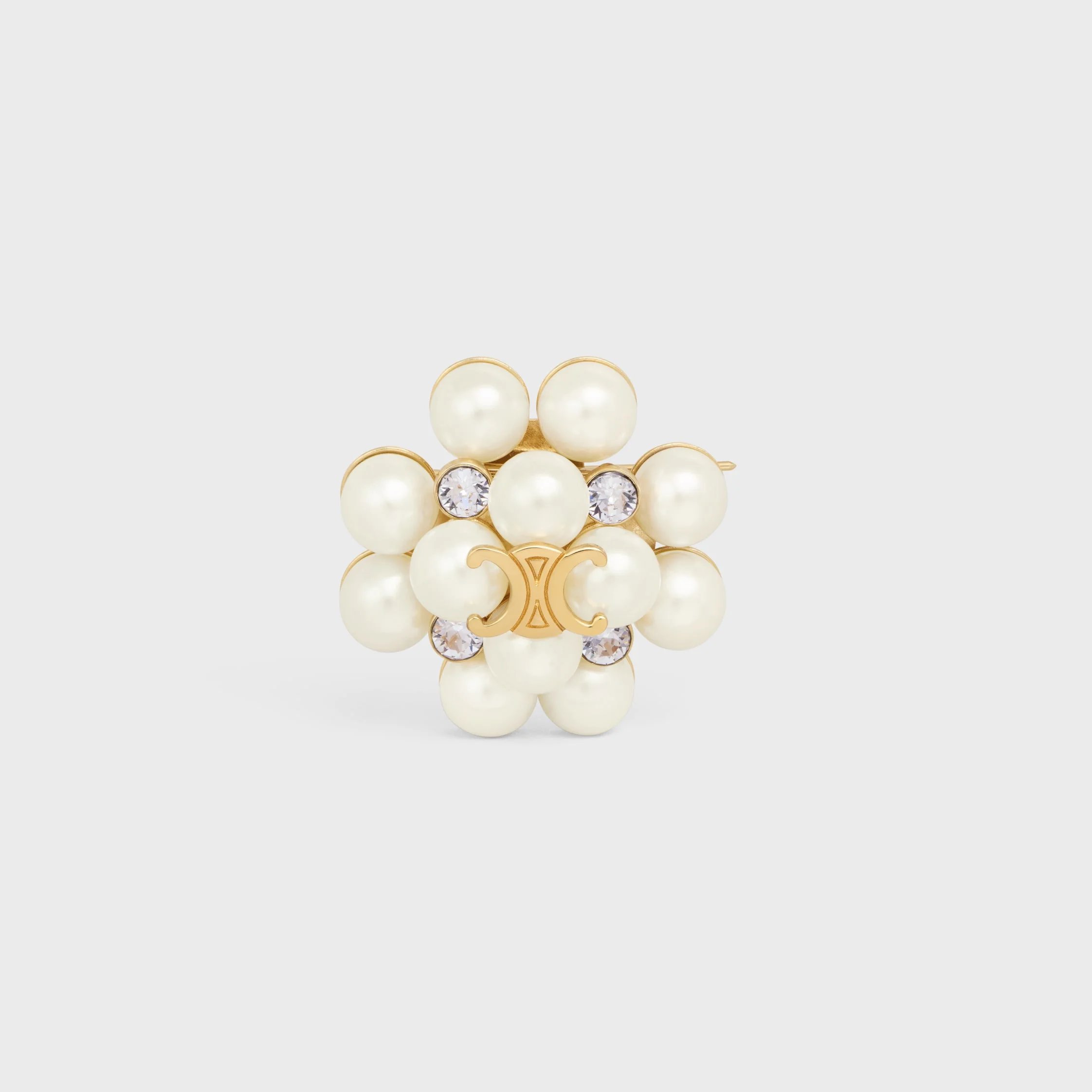 Les Perles Celine Brooch in Strass, Resin Pearls, Brass with Gold Finish and Steel