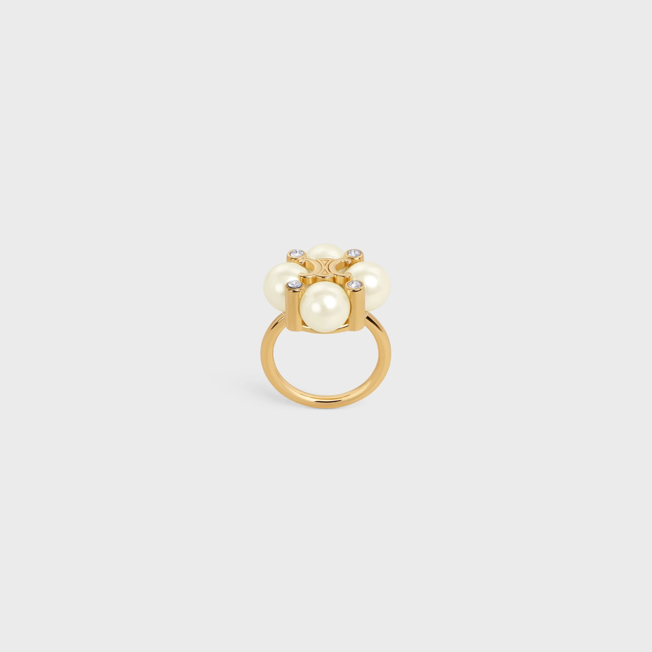 Les Perles Celine Ring in Strass, Resin Pearls and Brass with Gold Finish