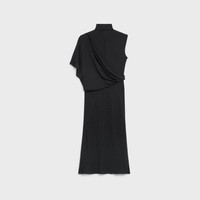 ONE-SHOULDER DRAPED DRESS IN ALL-OVER CELINE PRINT MATTE AND SHINY SILK DETAILS 95% VISCOSE 5% METALLIC POLYESTER 100% SILK LINING LOOSE FIT MIDI LENGTH OVERTURNED COLLAR ONE-SHOULDER SLEEVE DRAPING ON THE SLEEVE AND WAIST CENTER BACK ZIPPER AND HOOK-AND-EYE CLOSURE MADE IN FRANCE REFERENCE : 2R28G326S.38NO