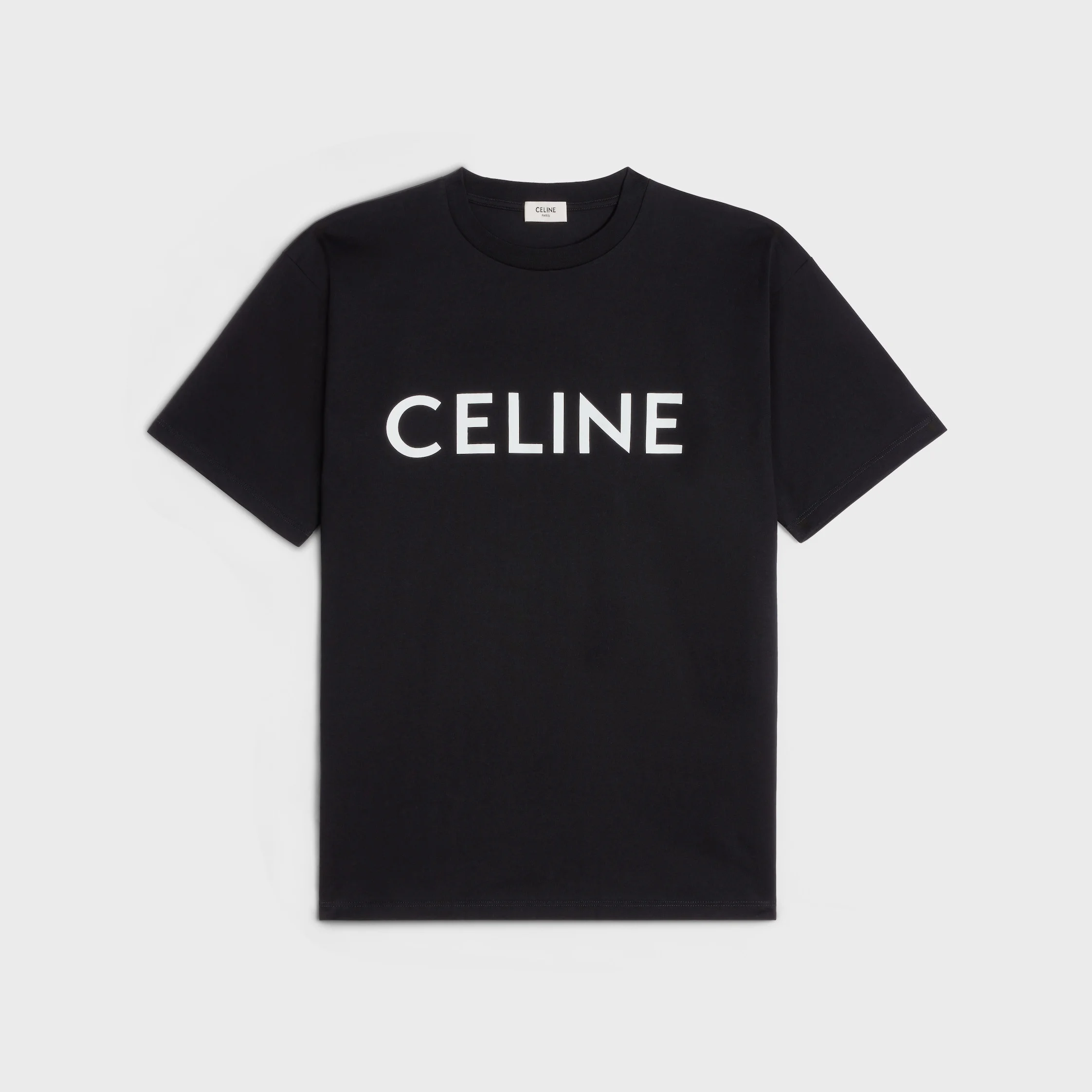 LOOSE T-SHIRT WITH CELINE PRINT IN COTTON JERSEYTHE LOOSE CELINE T-SHIRT IS A LARGE FIT, THE SHOULDERS ARE DROPPED AND THE BODY LENGTH STOPS BELOW THE HIPS.IT IS POSSIBLE TO TAKE ONE SIZE DOWN FROM YOUR USUAL SIZE. DETAILS 100% COTTON CELINE PRINT LOOSE FIT CREW NECK RIBBED TRIM ON THE COLLAR MADE IN FRANCE REFERENCE : 2X764671Q.38AW