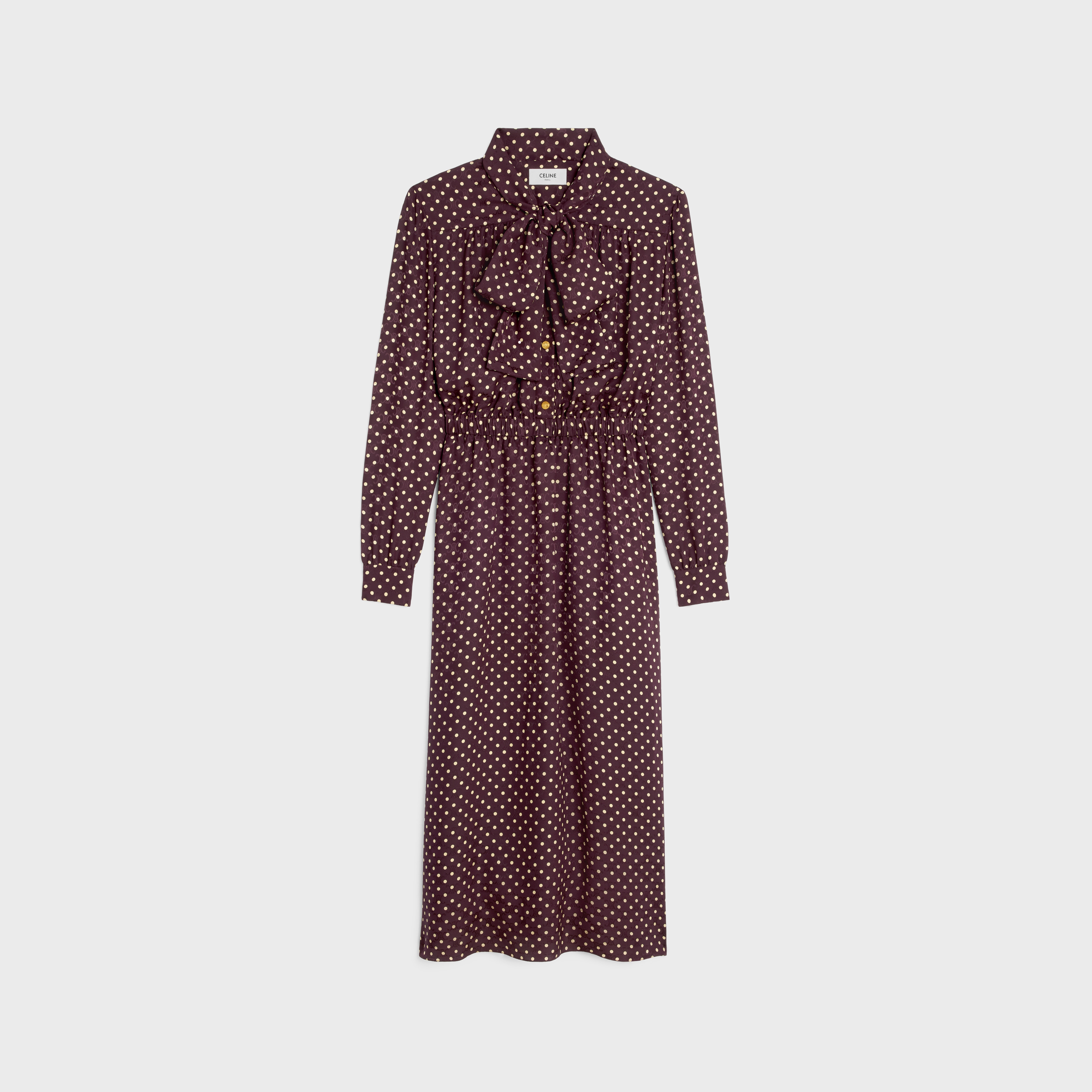 DRESS WITH LOW LAVALLIÈRE COLLAR IN MINI TRIOMPHE POLKA DOT PRINT SILK DETAILS 100% SILK CLASSIC FIT MIDI LENGTH LAVALLIÈRE COLLAR ELASTIC WAIST 4 TRIOMPHE BUTTONS 1 TRIOMPHE BUTTON ON THE CUFFS MADE IN ITALY REFERENCE : 2R38J518V.27XR