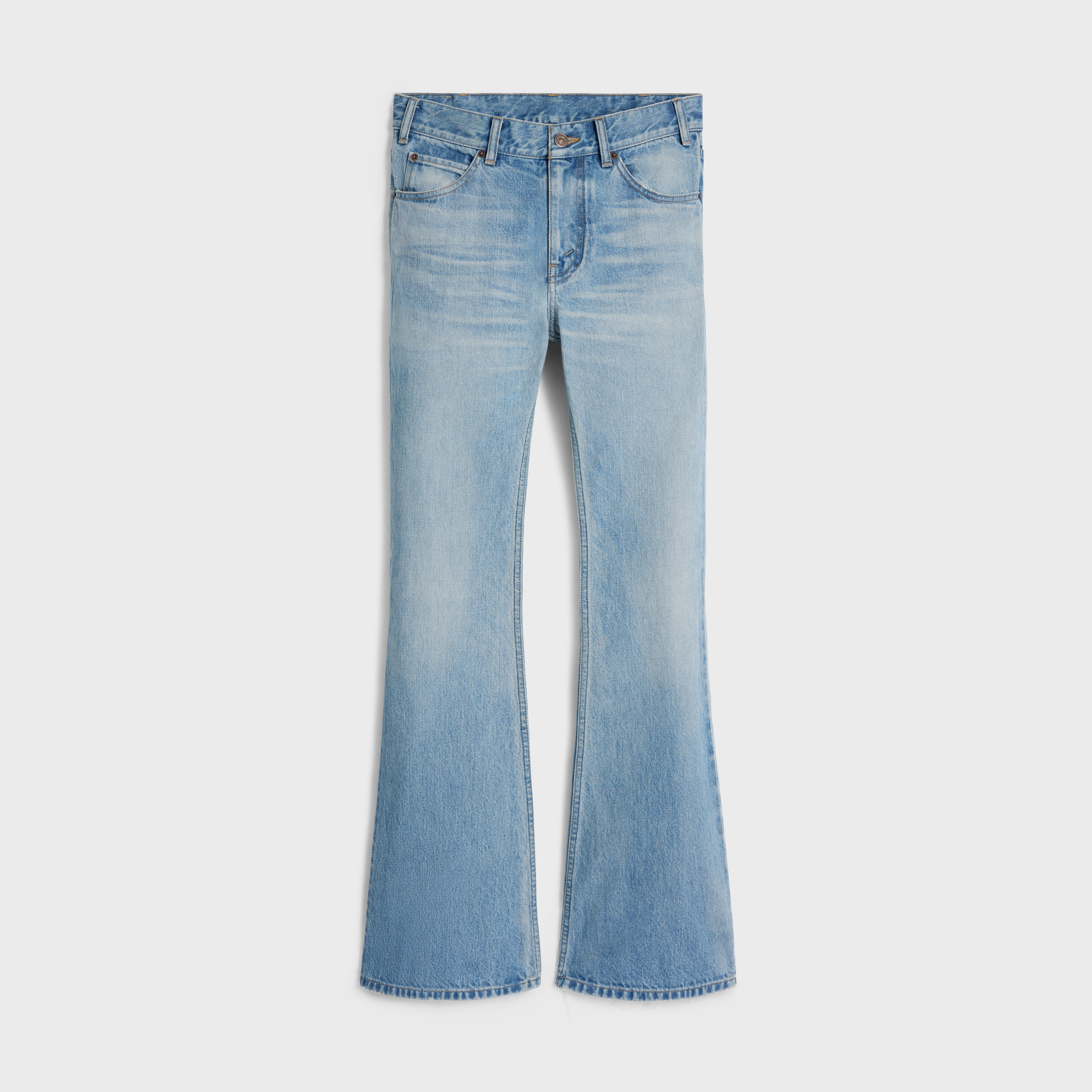 LOW-RISE MARCO JEANS IN BLUE ECLIPSE WASH DENIMADJUSTED FIT. AUTHENTIC DENIM. FOR A MORE RELAXED FIT, IT'S POSSIBLE TO CHOOSE ONE SIZE UP FROM YOUR USUAL SIZE. DETAILS 100% COTTON BLUE ECLIPSE WASH CLASSIC FIT LOW-RISE FLARED LEG 5 POCKETS RIVETS ON THE FRONT POCKETS PATCH AT THE BACK ON THE WAISTBAND CELINE JEANS-ENGRAVED ZIP AND BUTTONS MADE IN JAPAN REFERENCE : 2N06B967W.08UE