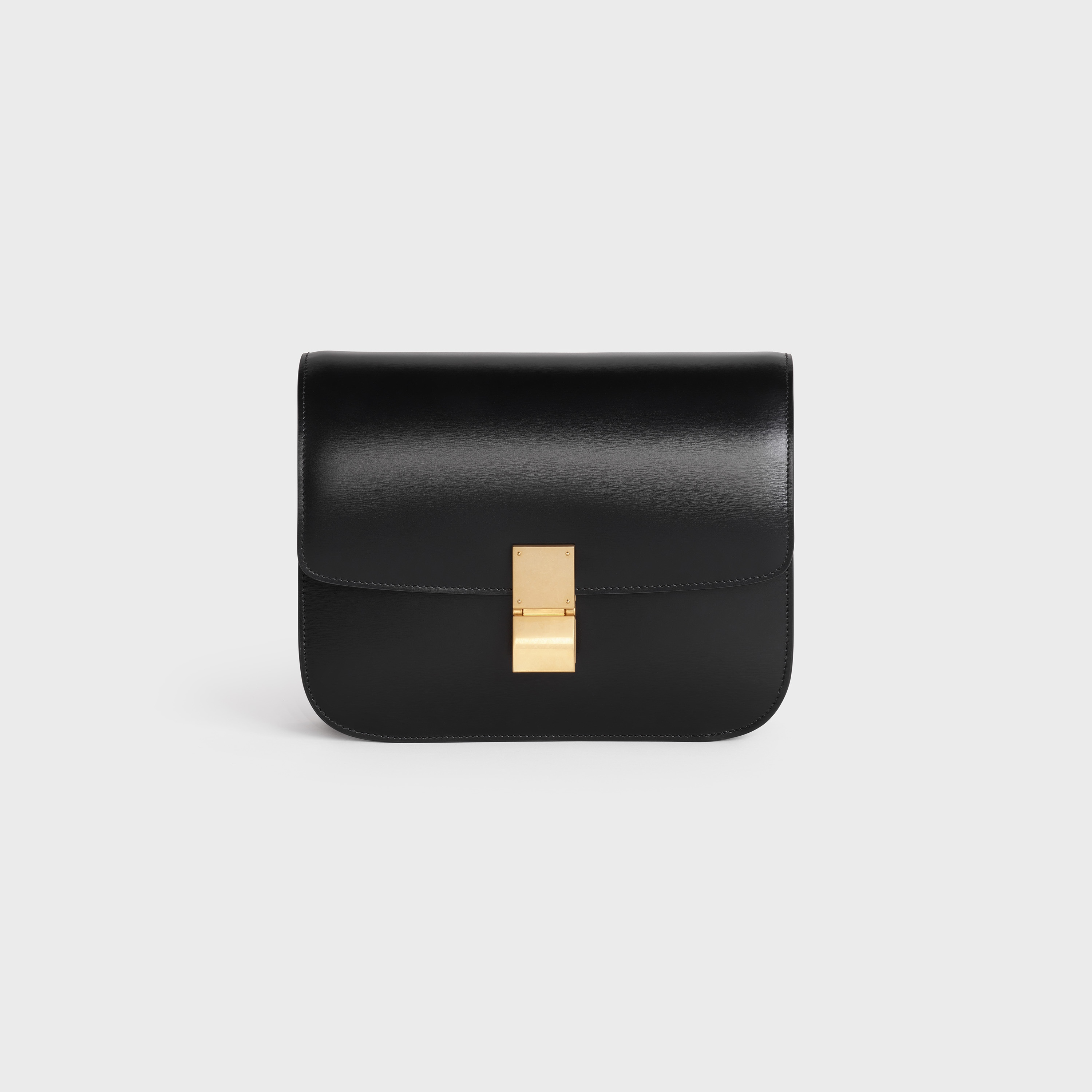 MEDIUM CLASSIC BAG IN BOX CALFSKIN WITH AN ADJUSTABLE AND REMOVABLE LEATHER STRAP AND A METALLIC CLASP CLOSURE. DETAILS 9 X 7 X 3 IN (24 X 18 X 7 CM) CALFSKIN LAMBSKIN LINING GOLD FINISHING HAND CARRY, SHOULDER CARRY AND CROSS-BODY CARRY METALLIC CLOSURE INNER ZIPPED POCKET AND DOUBLE FLAT POCKET REMOVABLE AND ADJUSTABLE LEATHER STRAP WITH 18 IN (45 CM) DROP REFERENCE : 189173DLS.38NO