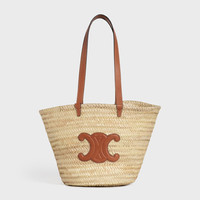 Medium Triomphe Celine Classic Panier in palm leaves and Calfskin