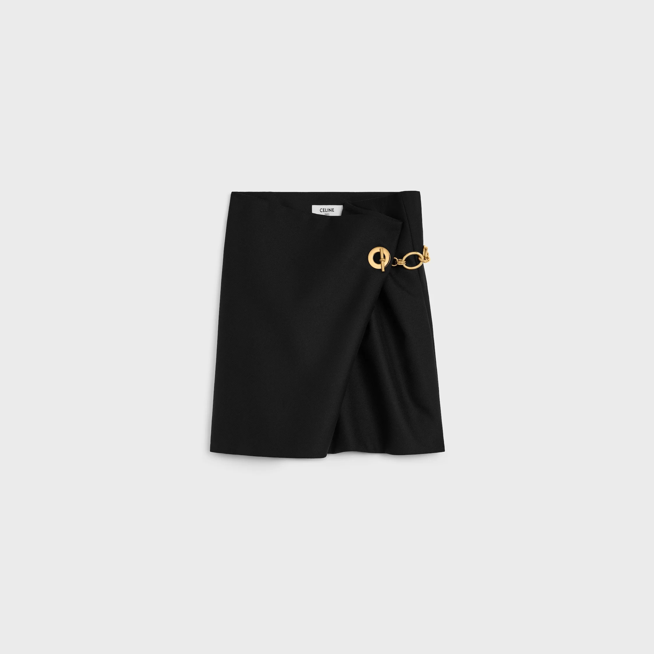 DETAILS 73% WOOL 27% MOHAIR CLASSIC FIT MID-RISE 2 SIDE POCKETS MINI LENGTH CELINE PARIS-ENGRAVED GOURMETTE MADE IN FRANCE REFERENCE : RJ07Y523K.38NO