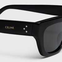 DETAILS TEMPLE LENGTH 55.1 IN LENS WIDTH 20.5 IN NOSE BRIDGE LENGTH 7.5 IN ACETATE FRAME RECTANGULAR FRAME BLACK LENSES PROTECTS FROM UVA AND UVB CELINE SIGNATURE ON TEMPLES REFERENCE : 4S192CPLB.38NO