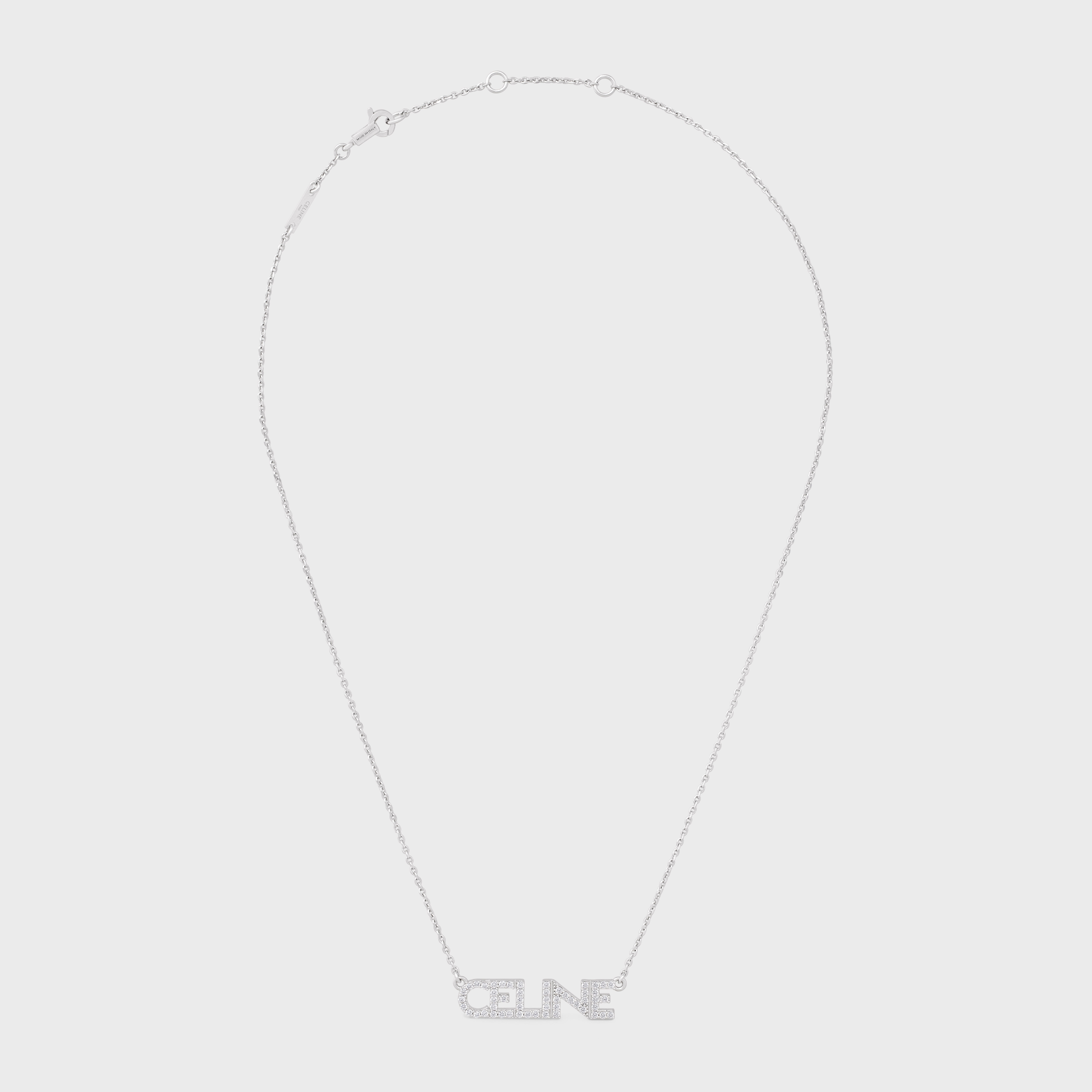 DETAILS TOTAL LENGTH 17 IN (42 CM) ADJUSTABLE TO 15.7 IN (40 CM) ADDITIONAL ADJUSTEMENT RING AT 15 IN (38 CM) BRASS AND CRYSTALS NICKEL FREE CELINE PARIS SIGNATURE ENGRAVED SNAP HOOK REFERENCE : 460YR6BCZ.36SI