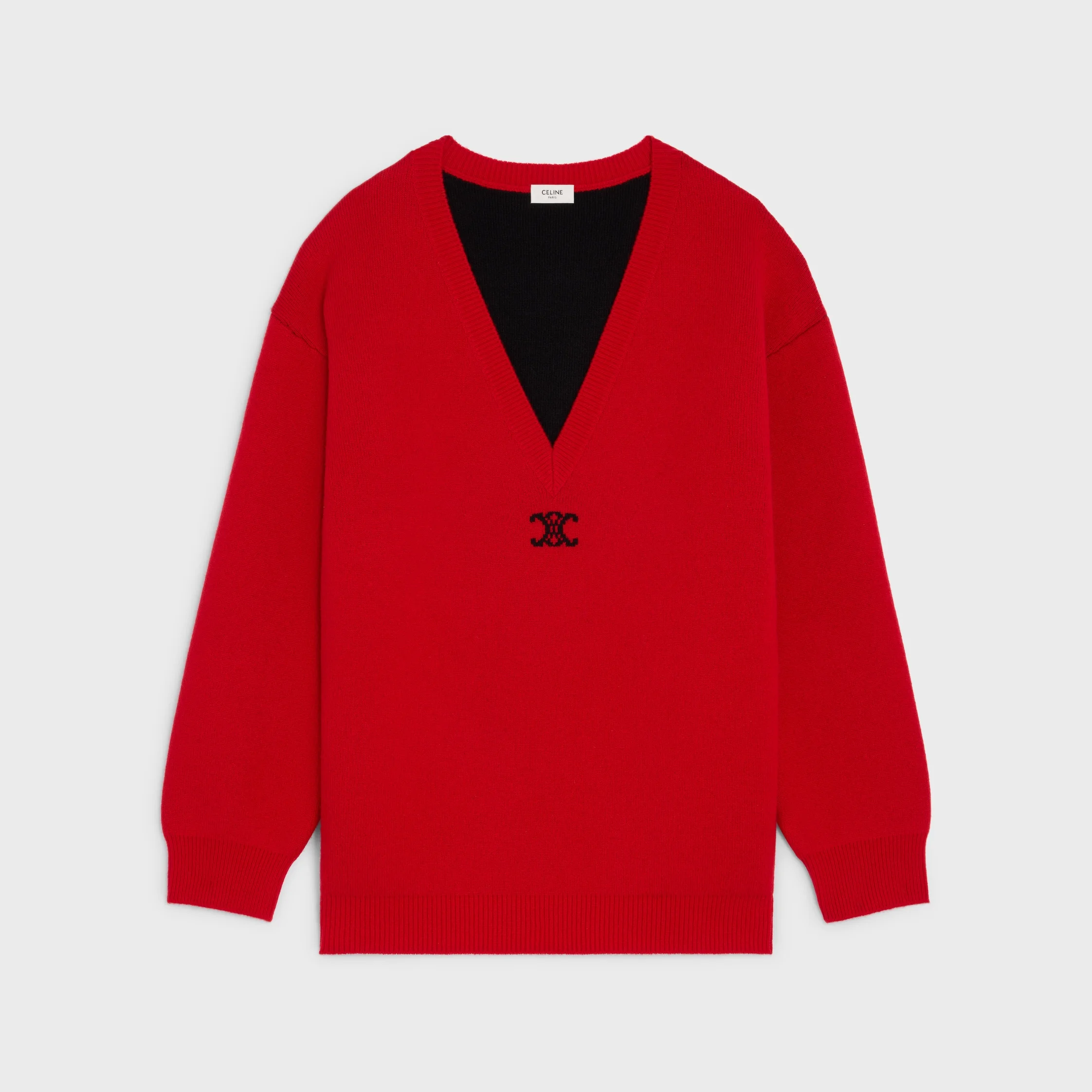 DETAILS 65% CASHMERE 32% WOOL 3% POLYAMIDE TRIOMPHE JACQUARD OVERSIZED FIT V-NECK RIBBED TRIM MADE IN ITALY REFERENCE : RY0RP0X73.27BK