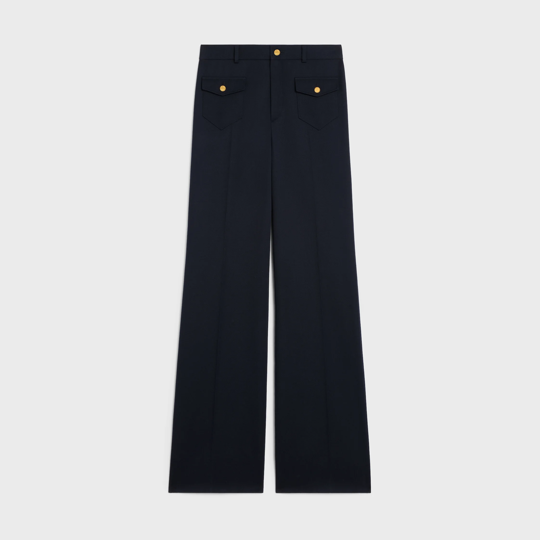 DETAILS 100% WOOL CLASSIC FIT MID-RISE 2 PATCH POCKETS WITH FLAP 2 PATCH POCKETS ON THE BACK ZIP AND TRIOMPHE BUTTON 1 TRIOMPHE BUTTON ON THE POCKETS MADE IN ITALY REFERENCE : RP05B092D.07MR
