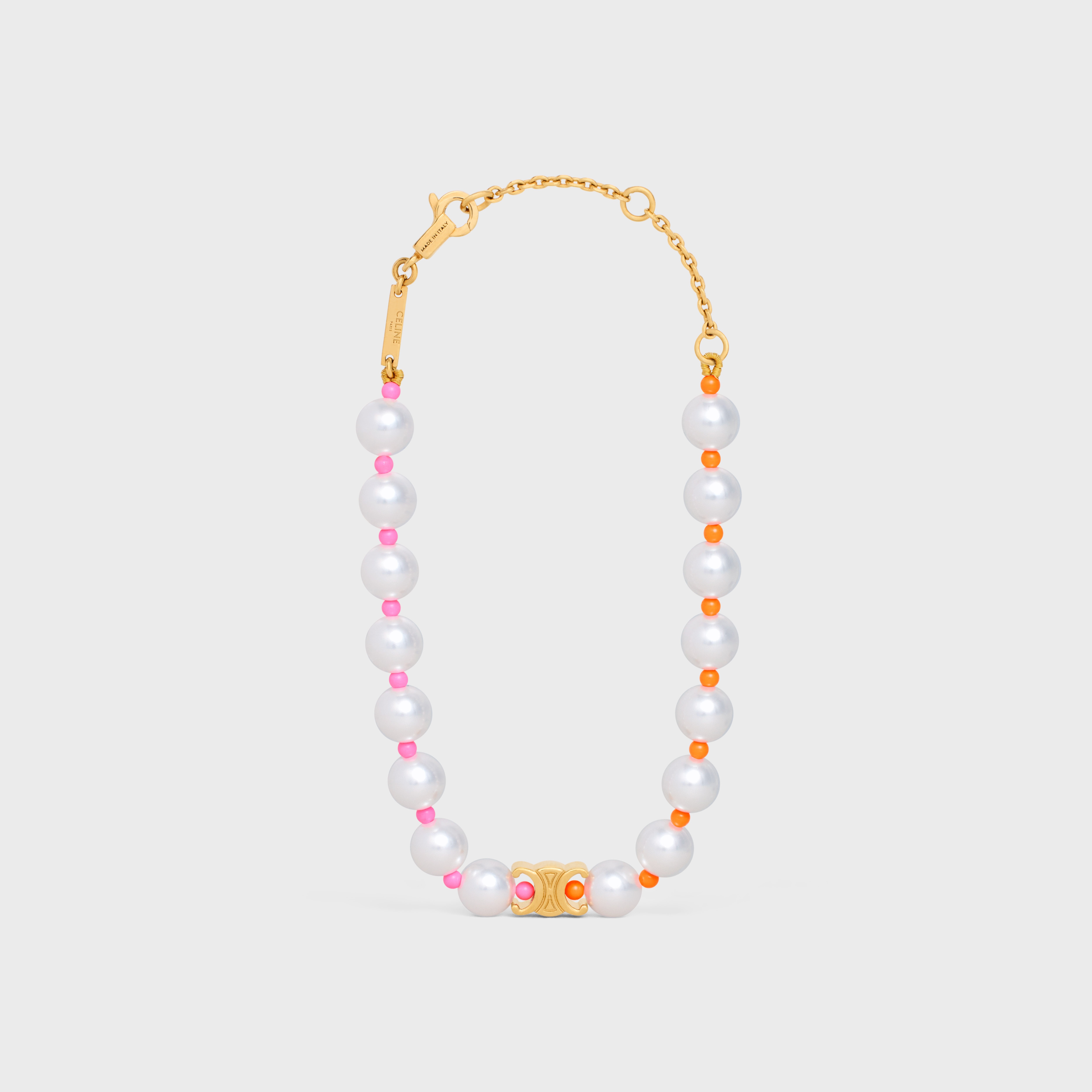 Celine Plage Pearl Bracelet in Brass with Gold Finish and Resin Pearls