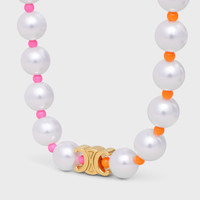 DETAILS TOTAL LENGTH 7 IN (18 CM) ADJUSTABLE TO 6.7 IN (17 CM) ADDITIONAL ADJUSTEMENT RING AT 6.3 IN (16 CM) BRASS AND RESIN PEARL NICKEL FREE ENGRAVED CELINE PARIS SIGNATURE FERMOIR MOUSQUETON REFERENCE : 460XN6PRB.14ML
