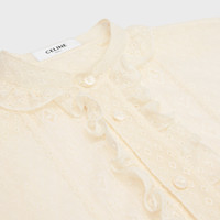 ROMY CROPPED SHIRT WITH FRILL COLLAR IN DIAMOND LACE AND COTTON DETAILS 92% COTTON 8% POLYAMIDE CLASSIC FIT CROPPED LENGTH HIGH COLLAR WITH FRILLS FRONT PANEL WITH FRILLS BUTTONED CUFFS 5 MOTHER-OF-PEARL BUTTONS 2 MOTHER-OF-PEARL BUTTONS ON THE CUFFS MADE IN ITALY REFERENCE : 2C00B375W.12CR