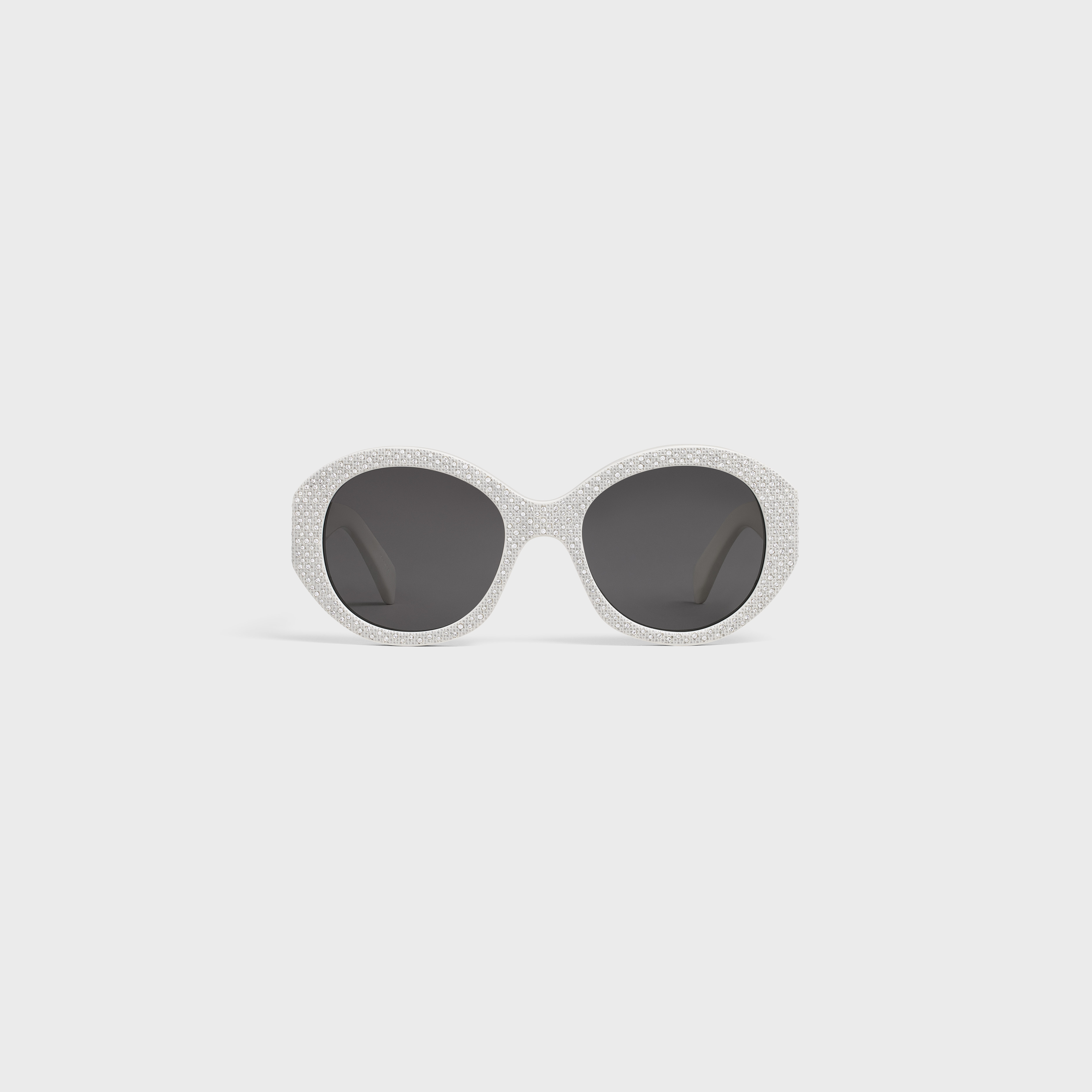 DETAILS TEMPLE LENGTH 5.5 IN LENS WIDTH 2.1 IN NOSE BRIDGE LENGTH 0.8 IN ACETATE FRAME ROUND FRAME SMOKE LENSES PROTECTS FROM UVA AND UVB ALL OVER LASER PRINT AND HAND-APPLIED CRYSTALS FOR FULL METALLIC EFFECT. CELINE SIGNATURE IN CRYSTALS ON TEMPLES CRYSTALS EMBELLISHMENT ON THE FRONT REFERENCE : 4S240CPSB.01BC