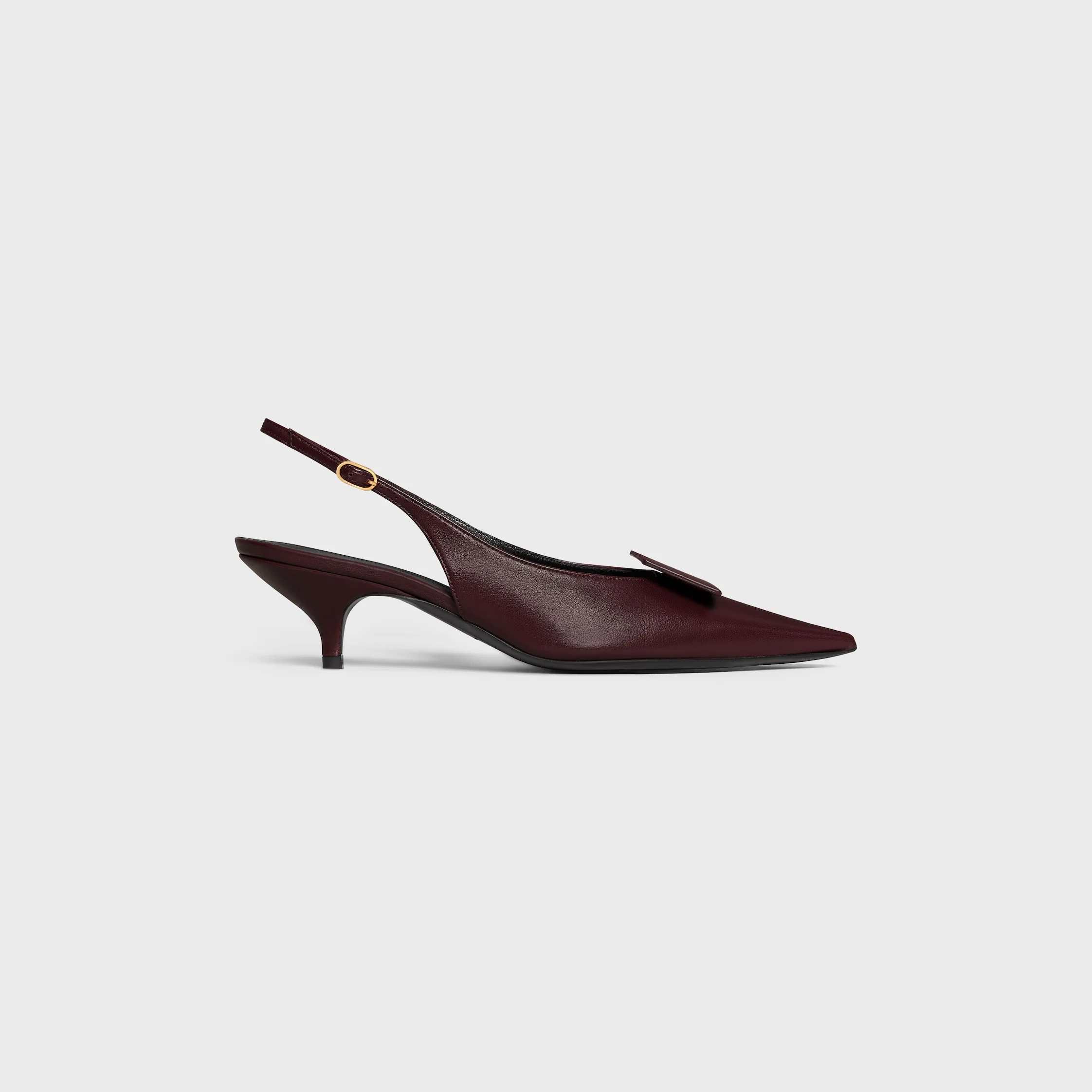DETAILS 100% LAMBSKIN 100% GOATSKIN LINING 2 IN (50 MM) HEEL LEATHER-COVERED HEEL POINTED TOE SHAPE GOLD FOILED “CELINE TRIOMPHE PARIS” INSCRIPTION ON THE UPPER ADJUSTABLE BUCKLE LEATHER INSOLE LEATHER OUTSOLE MADE IN ITALY REFERENCE : 366415268C.28BD