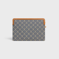 DETAILS 9.8 X 6.9 X 0.4 IN (25 X 17.5 X 1 CM) TEXTILE, TRIMMINGS IN NATURAL CALFSKIN NATURAL CALFSKIN LINING GOLD FINISHING ONE MAIN ZIPPED COMPARTMENT ONE MAIN ZIPPED COMPARTMENT REMOVABLE WRIST STRAP WITH 8 IN (20 CM) DROP REFERENCE : 10J502GX5.07PM