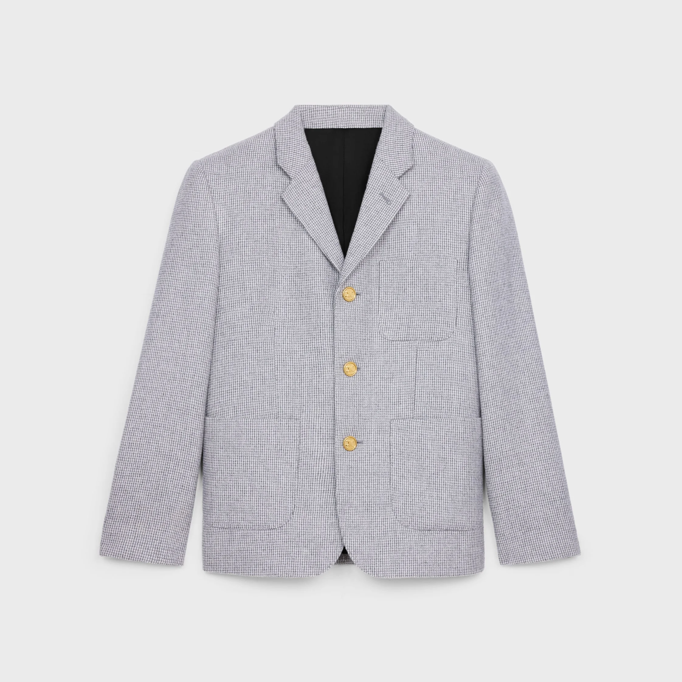 DETAILS 52% CASHMERE 24% MOHAIR 24% LAINE LINING 52% VISCOSE 48% CUPRO SLEEVES LINING 100% VISCOSE CLASSIC FIT TAILORED WITH LIGHTWEIGHT FRONT PANEL AND SHOULDER PADS NOTCH COLLAR 1 PATCH POCKET ON THE CHEST 2 PATCH POCKETS 3 TRIOMPHE BUTTONS 4 TRIOMPHE BUTTONS ON THE CUFFS MADE IN ITALY REFERENCE: RV0A50F85.FYP2