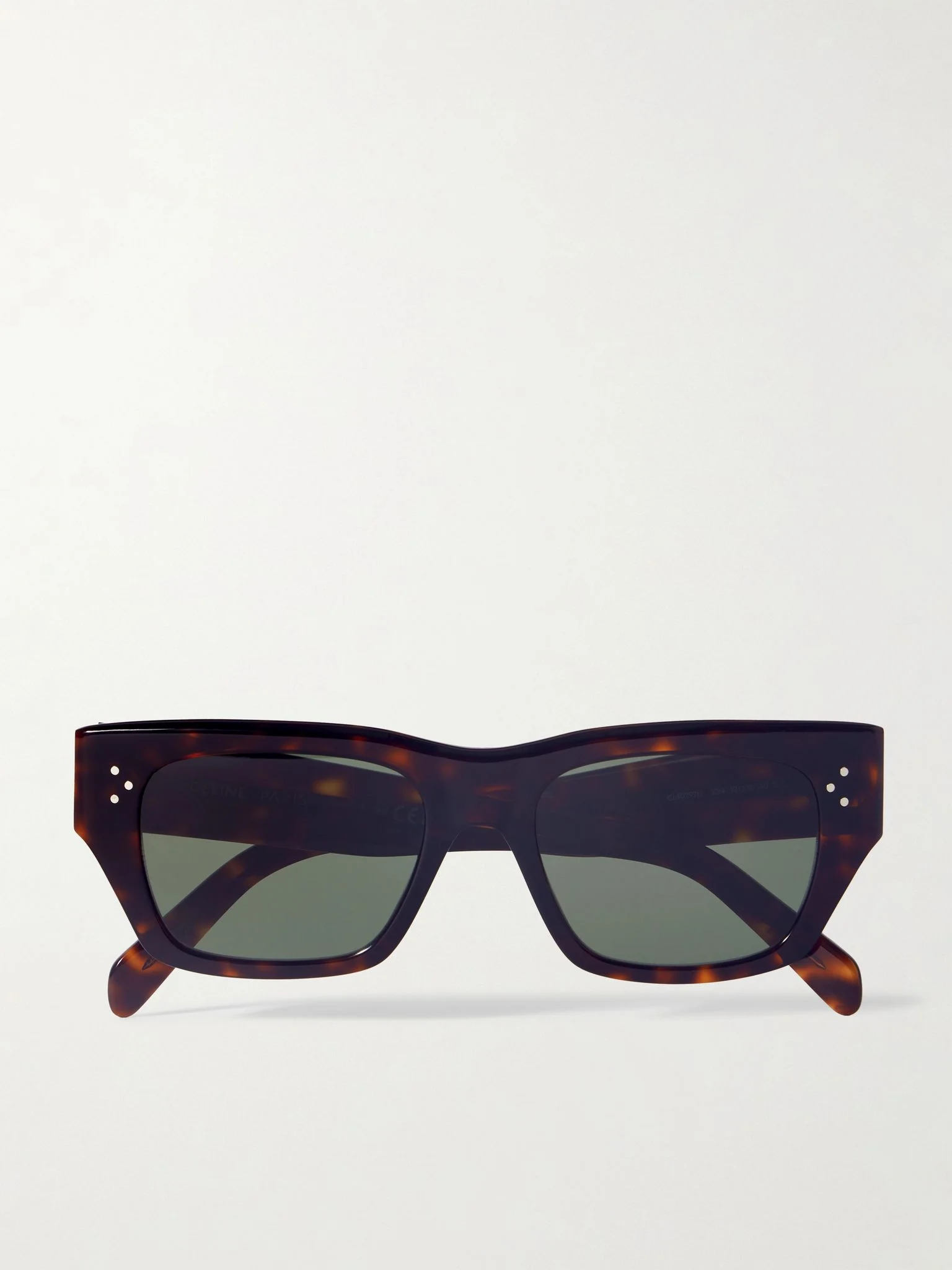 The '3 Dots' at the front and temples of these sunglasses are a CELINE Eyewear signature. Made in Italy from tortoiseshell acetate, they have classic square frames and are finished with gold logo lettering along the wide arms. Keep yours protected in the accompanying case. Details & Care - Tortoiseshell acetate - Come with a case - 100% UV protection