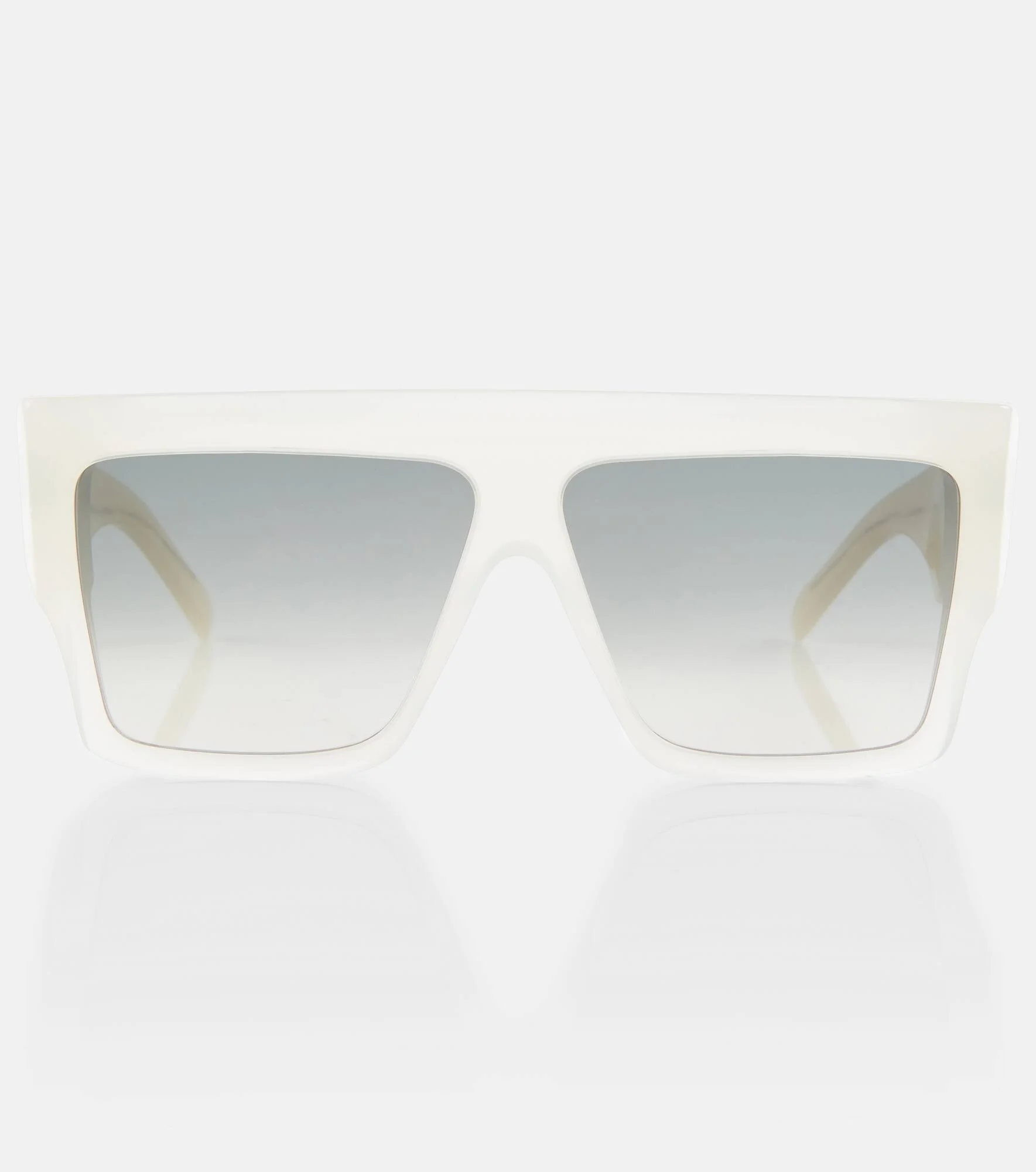 Square overszied sunglasses are a Celine Eyewear signature, making this bold white pair a strong investment. Made from acetate, they have gradient lenses and wide arms for a modern look. Product Details - Frame color: cream - Frame material: acetate - Lens color: light brown - comes with cleaning cloth - comes in a logo-embossed case - The color of the case may vary - comes with a presentation box - Lens filter category 2 - Made in Italy - Item number: P00679975 Size & Fit - Lens width: 60mm-2.35" - Bridge size: 11mm-0.45" - Earpiece length: 145mm-5.7" - International fit