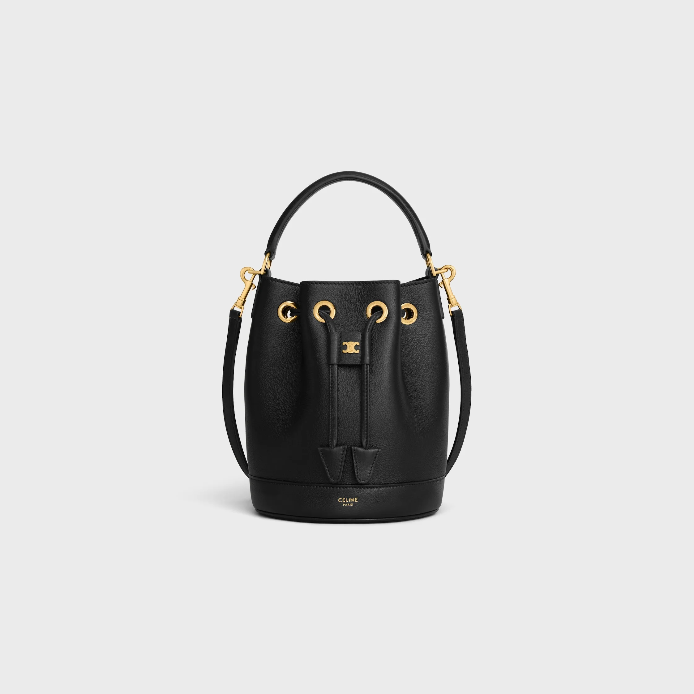 DETAILS 6.3 X 7.5 X 6.3 IN (16 X 19 X 16 CM) CALFSKIN SUEDE CALFSKIN LINING GOLD FINISHING HAND CARRY, SHOULDER CARRY AND CROSS-BODY CARRY DRAWSTRING LEATHER TIES WITH DECORATIVE METALLIC TRIOMPHE ONE MAIN COMPARTMENT ONE LEATHER HANDLE WITH 2.76 IN (7 CM) DROP ONE REMOVABLE AND ADJUSTABLE STRAP WITH A MINIMUM DROP 16.1 IN (41 CM) AND MAXIMUM DROP 18.9 IN (48 CM) REFERENCE : 121673DPJ.38NO