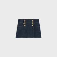 TRAPEZE MID-RISE MINI SKIRT IN RINSED WASH DENIM DETAILS 100% COTTON RINSED WASH CLASSIC FIT MID-RISE MINI LENGTH 2 PATCH POCKETS 8 TRIOMPHE JEANS BUTTONS MADE IN ITALY REFERENCE : 2S328799U.07IN