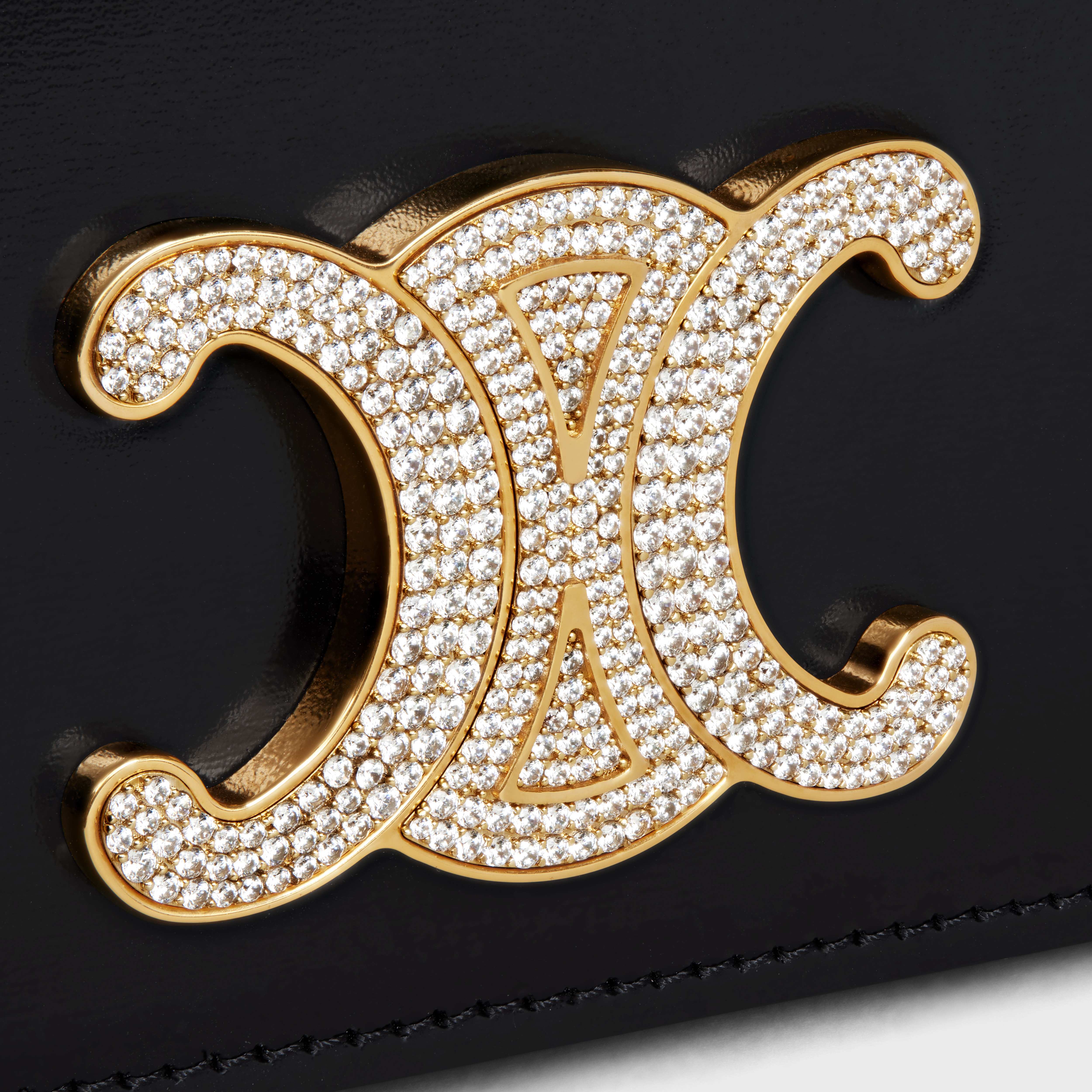 DETAILS 10 X 6 X 1 IN (26.2 X 14.5 X 2 CM) CALFSKIN LAMBSKIN LINING SHOULDER AND HAND CARRY TRIOMPHE SNAP BUTTON CLOSURE WITH CRYSTALS INNER FLAT POCKET INNER ZIPPED POCKET TWO INTERNAL COMPARTMENTS REMOVABLE STRAP WITH 10 IN (25 CM) DROP REFERENCE : 112223BF4.38NO