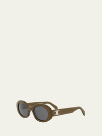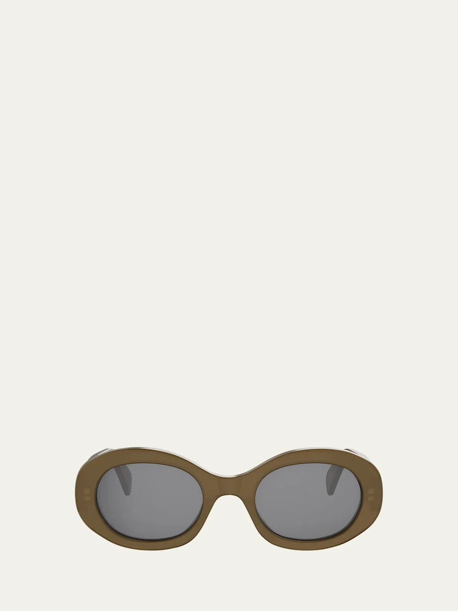 Celine oval sunglasses crafted of lightweight acetate Eye/bridge/temple (in mm): 52-22-145 Monochromatic lenses Saddle nose bridge Triomphe metal signature in relief on both temples Wide, tapered arms Acetate Hand wash Made in Italy Proposition 65 warning for California residents Online Inquiries: BGS21_D5GT8| Store Inquiries: #5404714