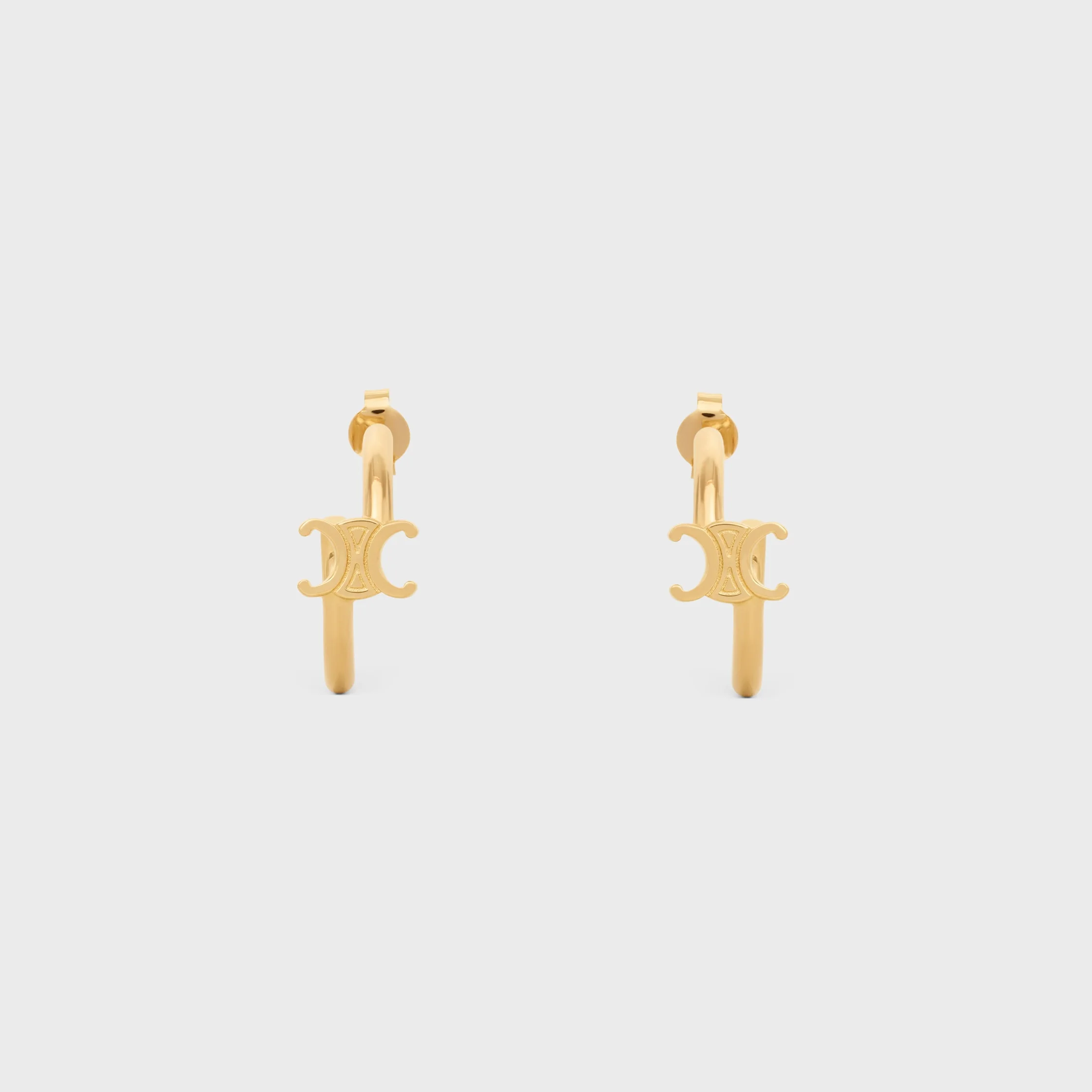 DETAILS DIAMETER 1 IN (2.2 CM) TRIOMPHE DIMENSIONS: 0.4 X 0.28 IN (1 X 0.7 CM) BRASS NICKEL FREE CELINE SIGNATURE ENGRAVED FOR PIERCED EARS REFERENCE : 460RD6BRA.35OR