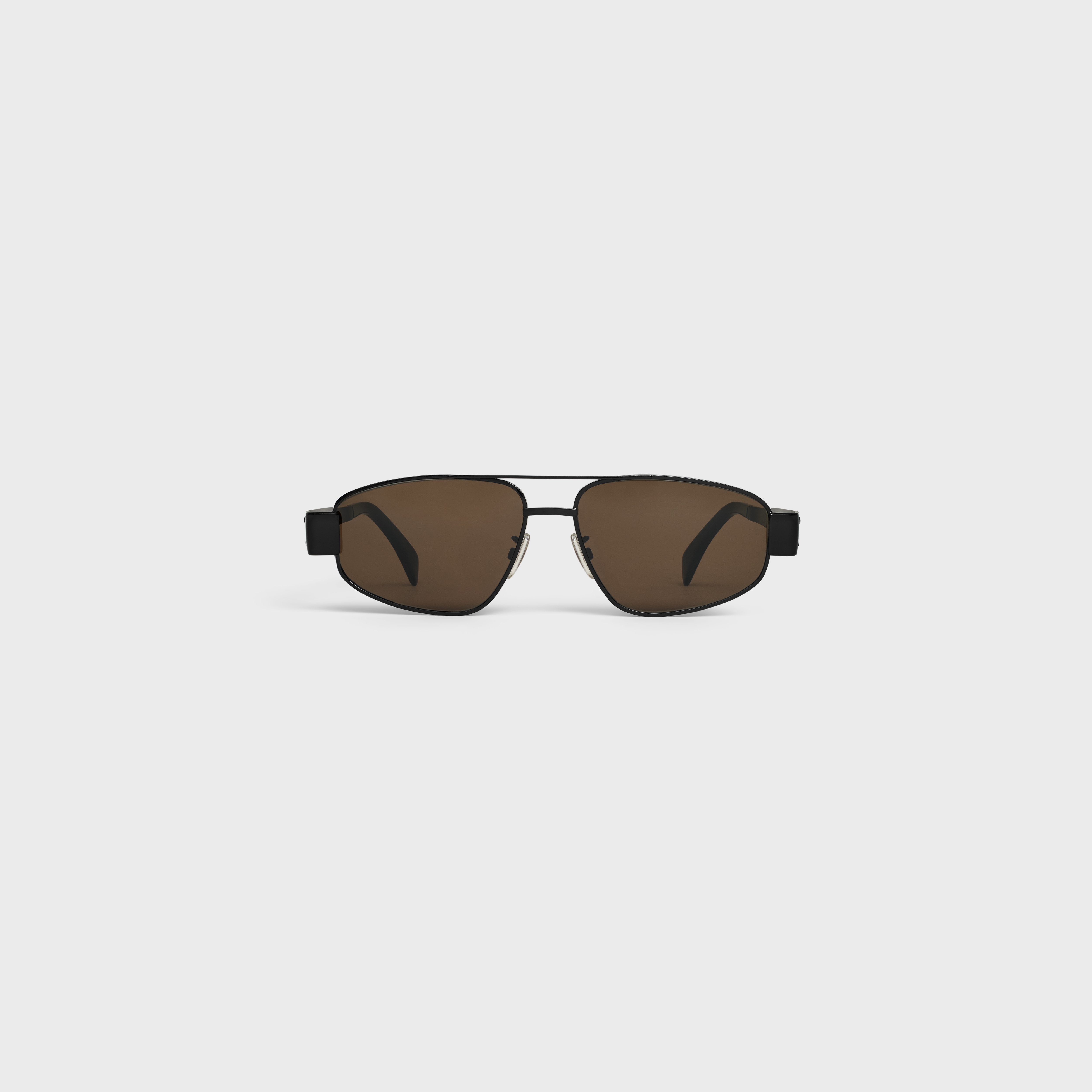 DETAILS TEMPLE LENGTH 5.5 IN LENS WIDTH 2.2 IN NOSE BRIDGE LENGTH 0.6 IN METAL FRAME NAVIGATOR FRAME BROWN LENSES PROTECTS FROM UVA AND UVB TRIOMPHE SIGNATURE ON TEMPLES REFERENCE : 4S281CMLB.38NM