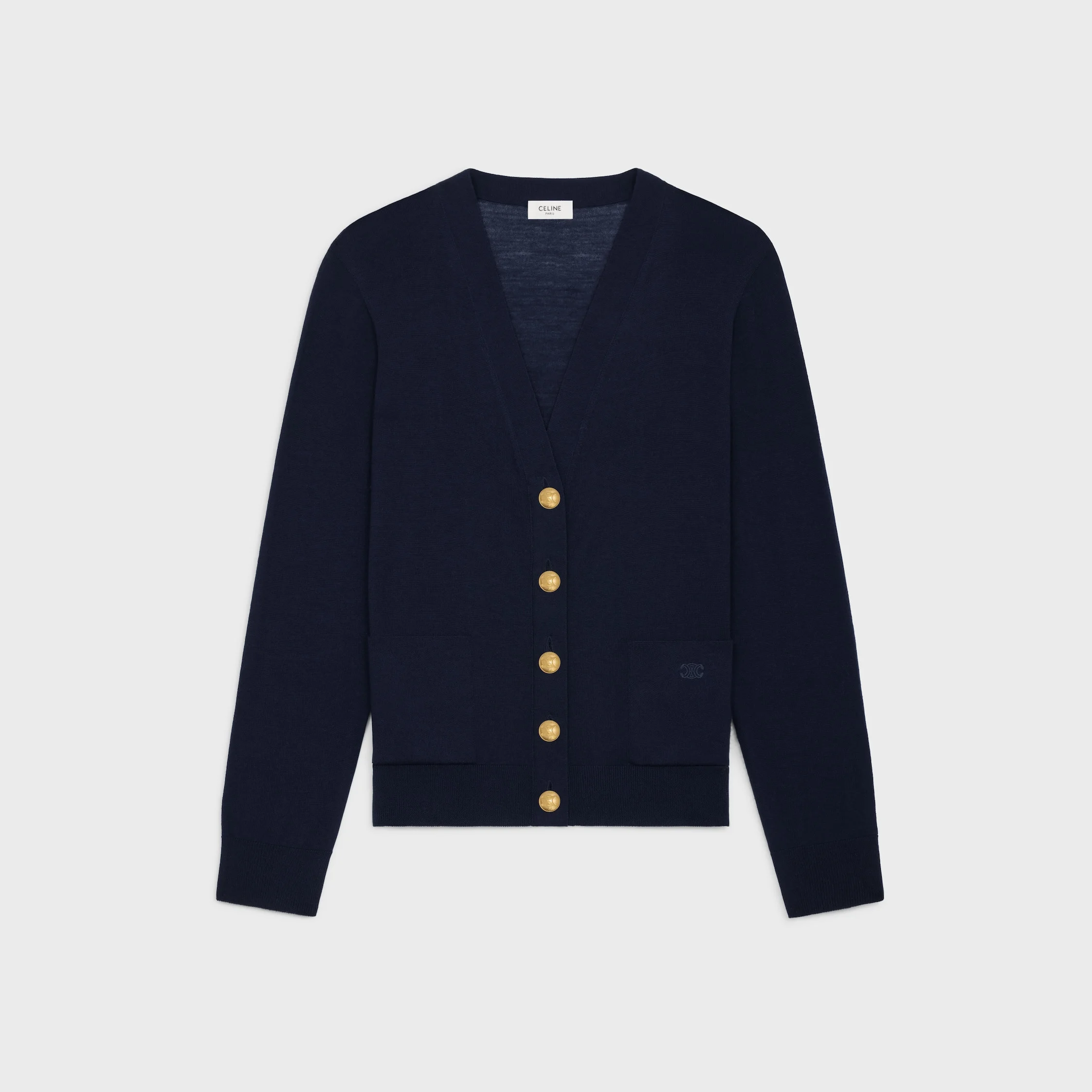 DETAILS 100% WOOL TRIOMPHE EMBROIDERY CLASSIC FIT V NECK LONG SLEEVES 2 PATCH POCKETS RIBBED TRIM 5 TRIOMPHE BUTTONS MADE IN ITALY REFERENCE: RV0NFD069.07MR