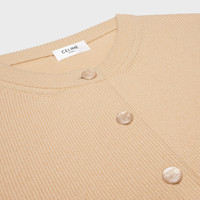 DETAILS 100% CASHMERE WOOL TRIOMPHE EMBROIDERY CLASSIC FIT CROPPED LENGTH CREW NECK LONG SLEEVES RIBBED TRIM 5 MOTHER-OF-PEARL TRIOMPHE BUTTONS MADE IN ITALY REFERENCE: RV0AK977V.03PI