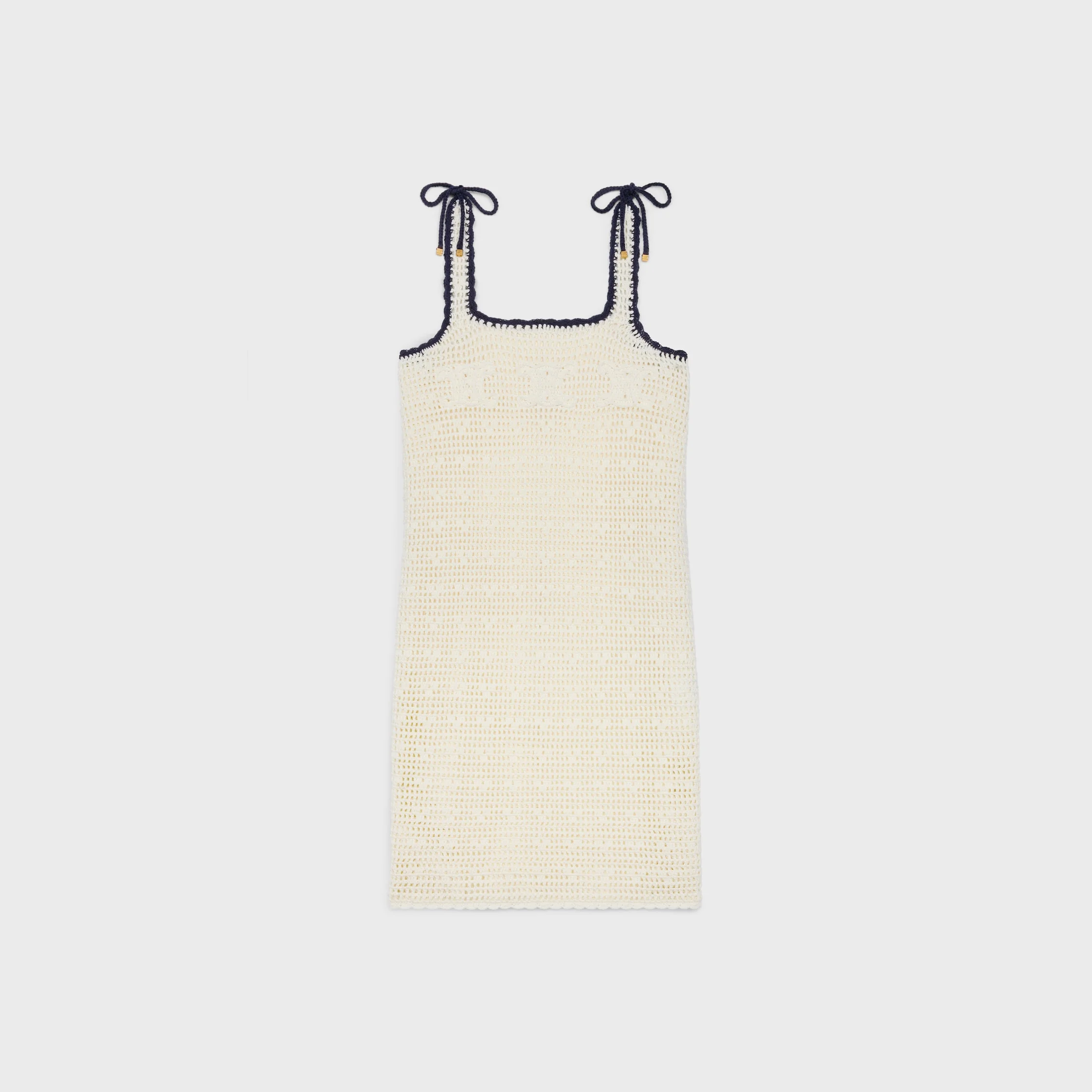 DETAILS 100% COTTON HAND-CROCHETED TRIOMPHE EMBROIDERY CLASSIC FIT MINI LENGTH KNOTTED SHOULDER STRAPS MADE IN ITALY REFERENCE: RY03G0089.01OW