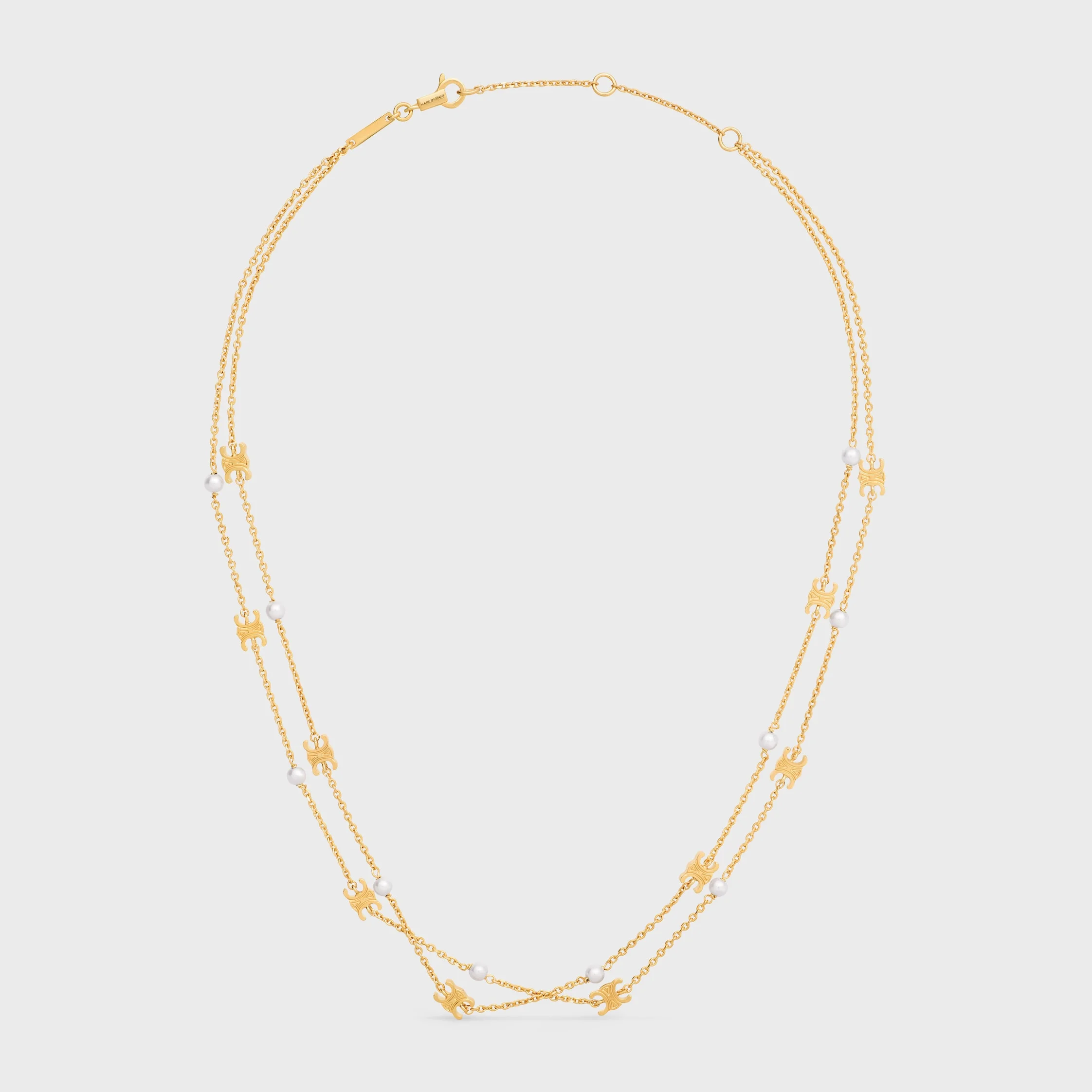Triomphe Pearl Double Necklace in Brass with Gold Finish and Resin Pearls