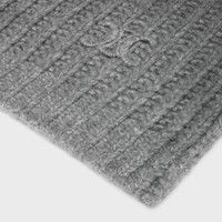 SCARF WITH TRIOMPHE EMBROIDERY IN RIBBED SILK, CASHMERE AND WOOL DETAILS 37% CASHMERE 37% WOOL 26% SILK 11.0 X 68.9 IN (28 X 175 CM) TRIOMPHE EMBROIDERY MADE IN ITALY REFERENCE : 2ADOO912Z.09GR